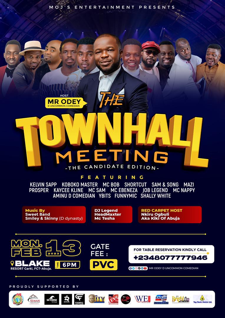 The Candidate edition of the Townhall Meeting comes up on Monday, February 13, 2023 at Blake Resort Garki Abuja at 6pm.
