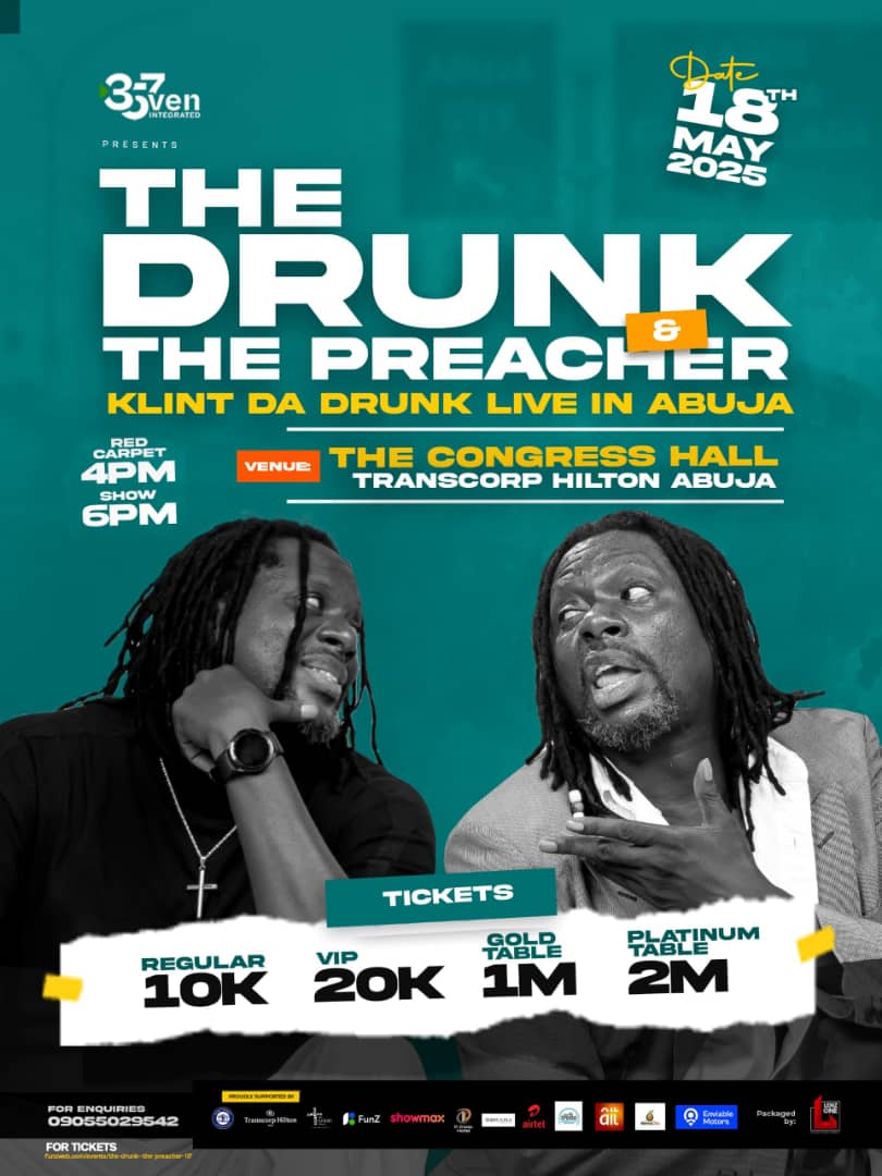 Coming up 18th May at the Transcorp Hilton Abuja, “The Drunk and The Preacher” is already trending on the social media space, with big industry players amplifying it in their handles.