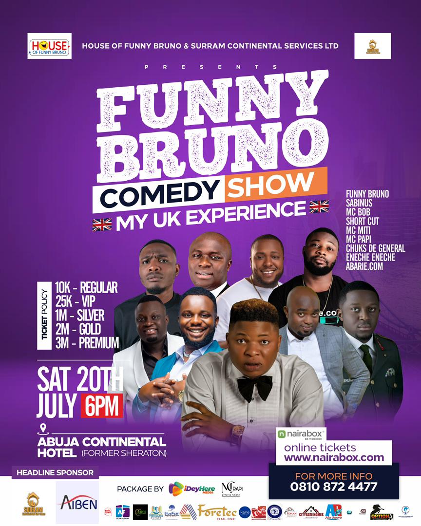 One of the finest Abuja comedians, Funny Bruno is set to thrill Abuja residents with his freshly minted comedy show, “My UK Experience”.