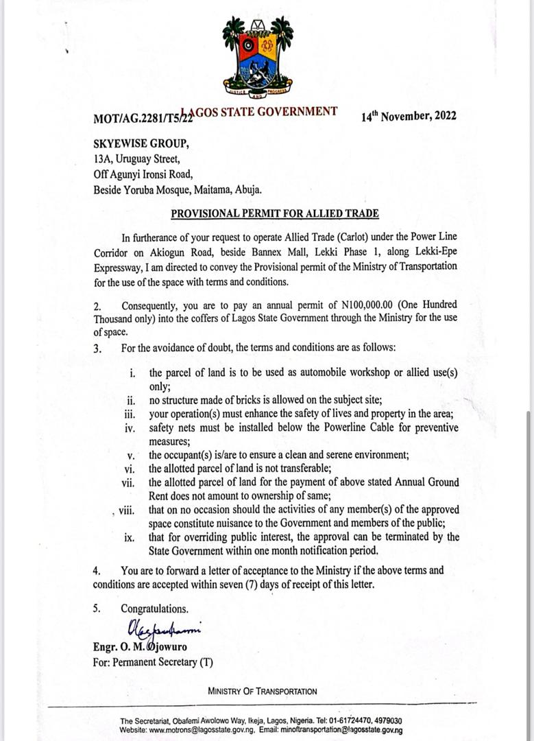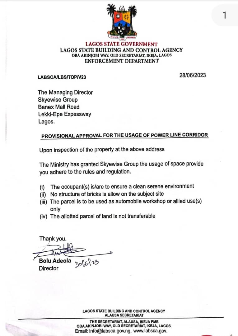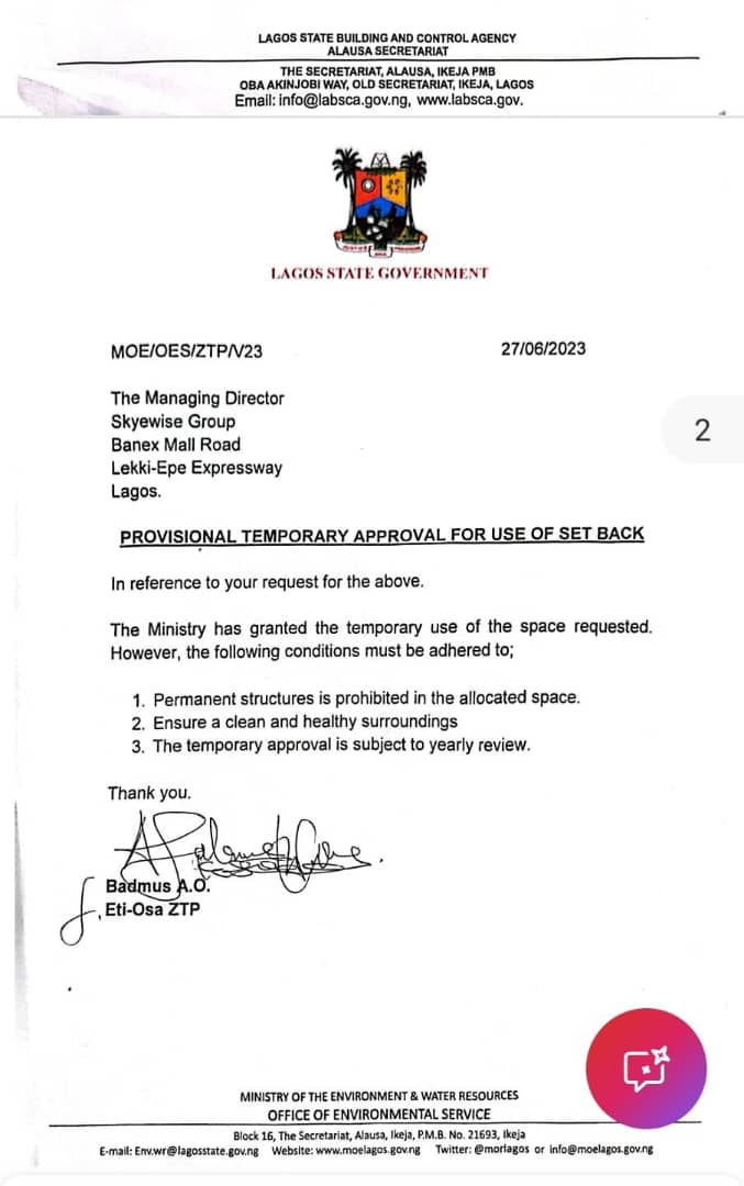 “All necessary building approvals, operational permits, dealership licenses, and environmental levies for the property were duly obtained from the Lagos State Government”, he said.