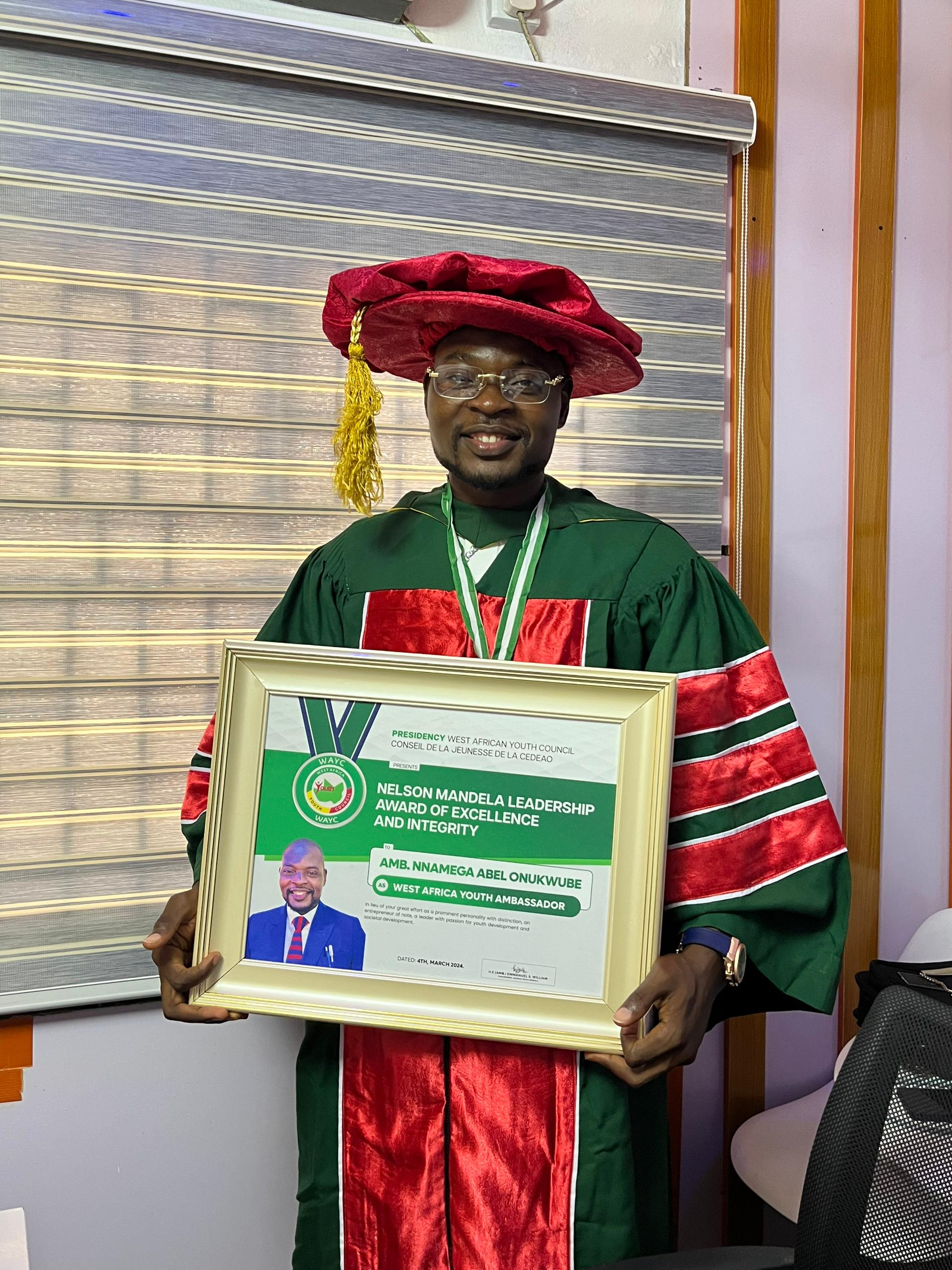 AMB. ONUKWUBE NNAMEGA ABEL, CEO OF ABELSWORLD LUXURY, HONORED AS ECOWAS YOUTH AMBASSADOR AND RECEIVES PRESTIGIOUS NELSON MANDELA LEADERSHIP AWARD