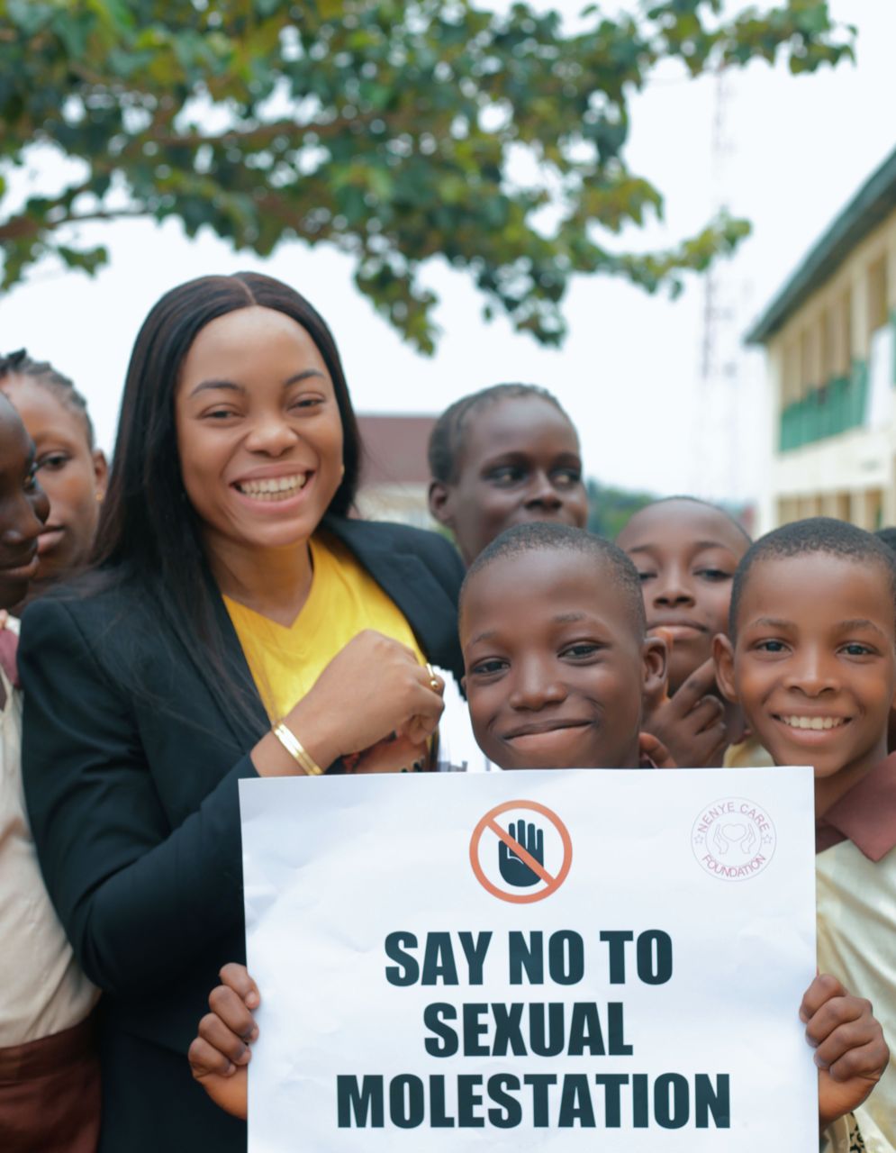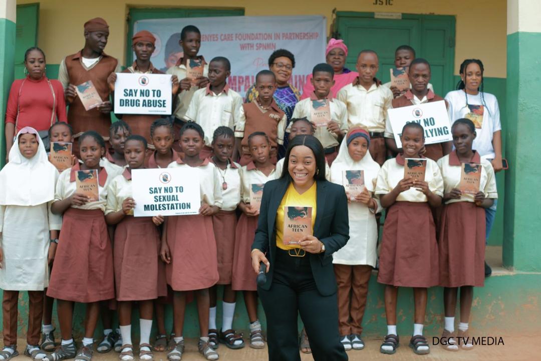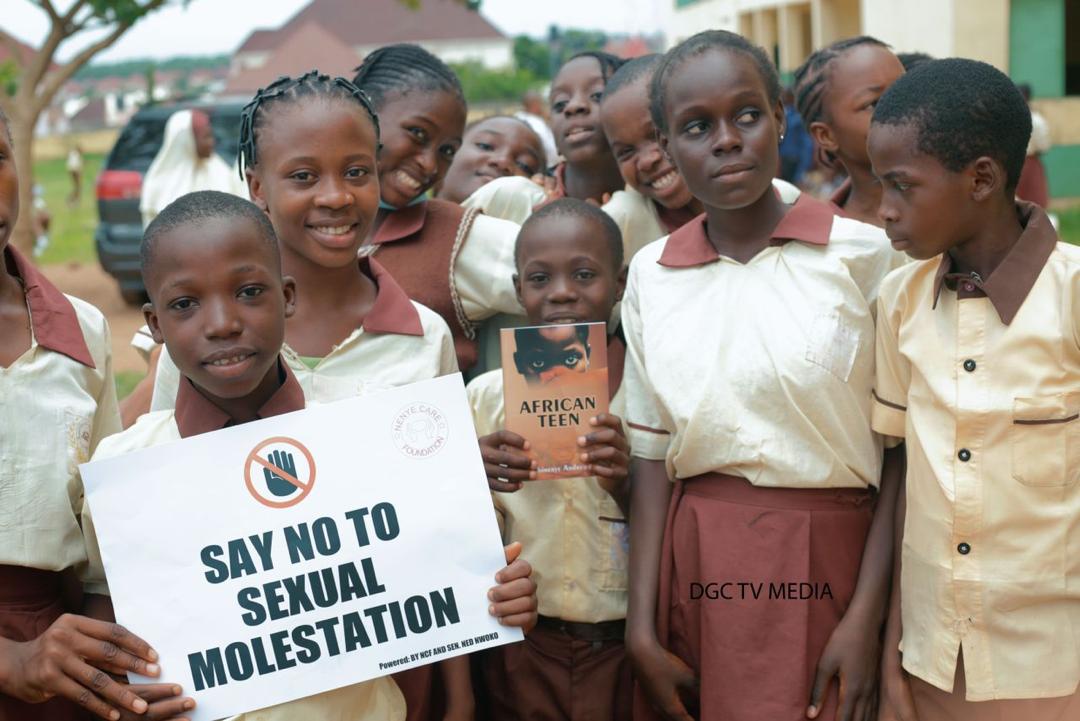During the awareness campaign, she also distributed copies of her book to the exciting pupils, a literary work which centres around ending molestation of teenage girls and boys, the silent torture, how they are bruised to silence.