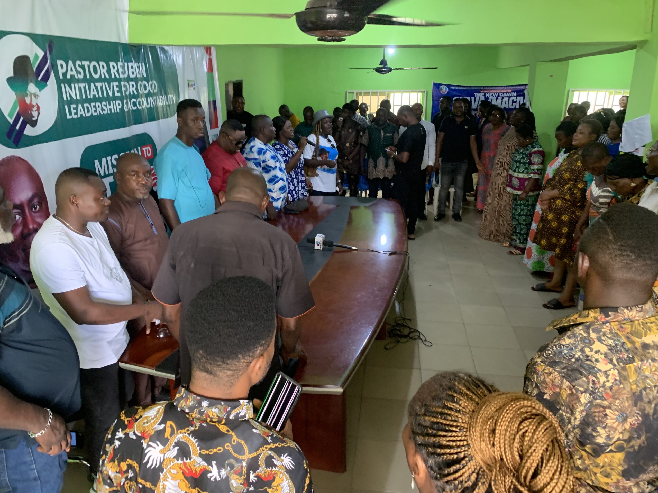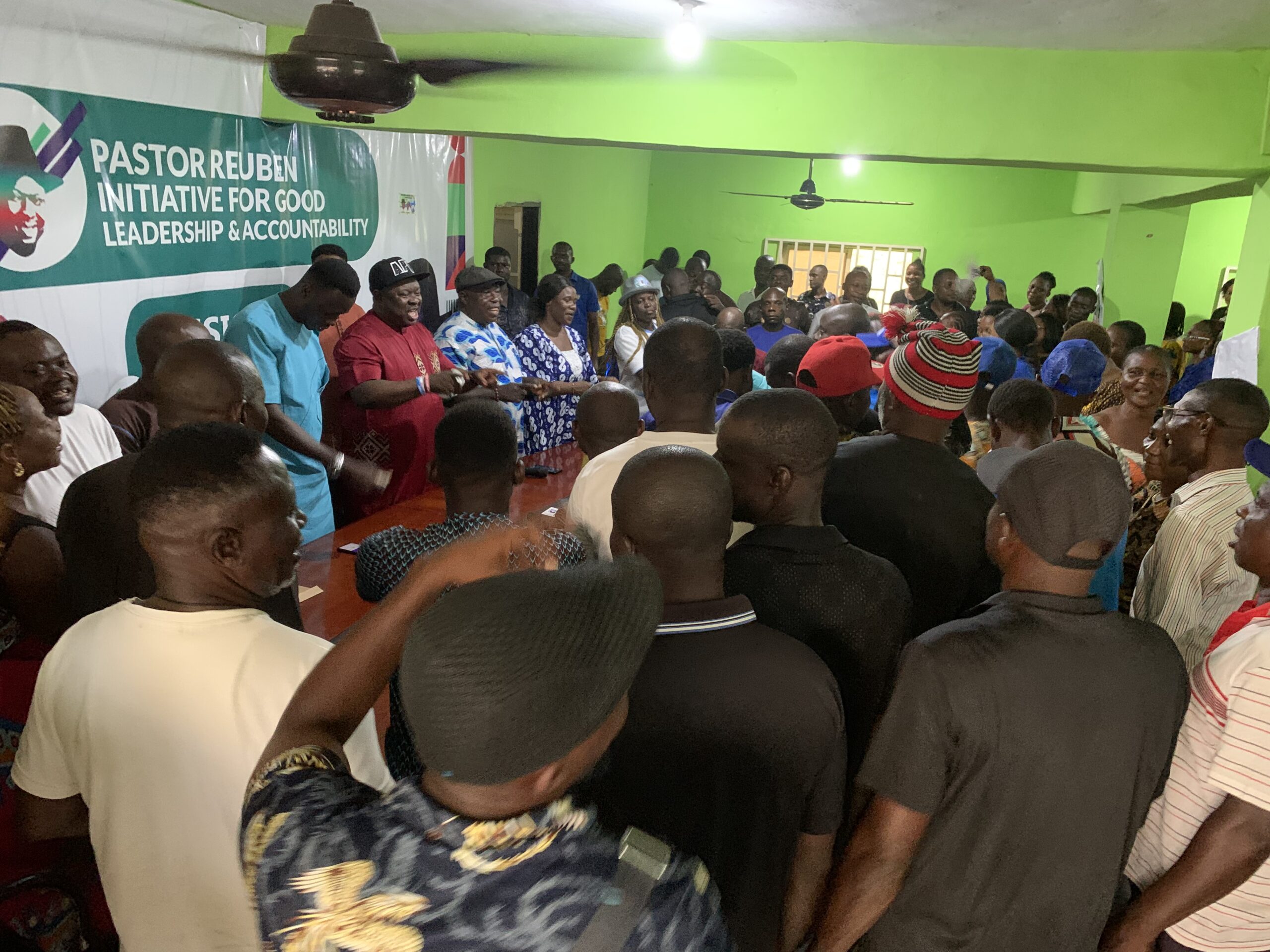 The founder Pastor Reuben initiative for Good leadership and accountability Chief Reuben Clifford Wilson today meets supporters after the defection of his former Director General Dr. Solomon David.