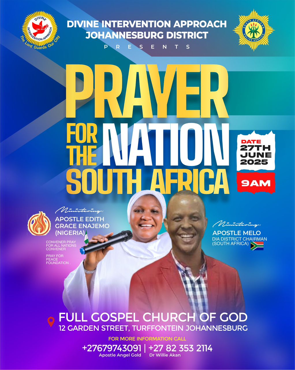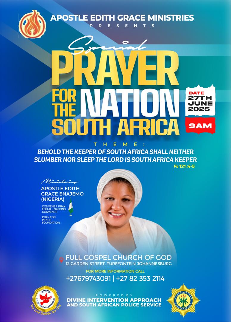 Apostle Edith Grace Specially invites you and members of your family to her Special Prayer Mandate of PROTECTION and PEACE for the great Nation of South Africa
