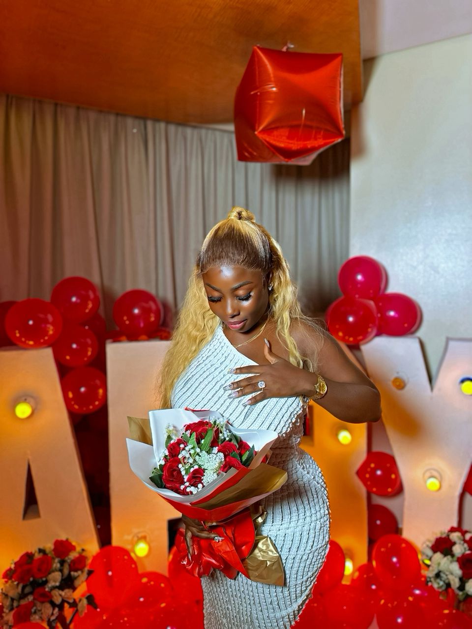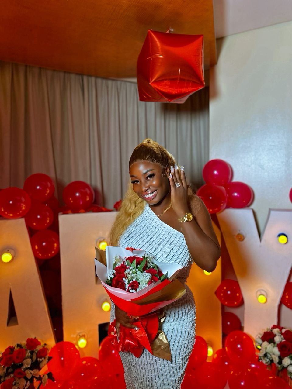 Bayelsa born celebrity female welder, Faith Lesley got engaged by her boyfriend on her birthday in Lagos.
