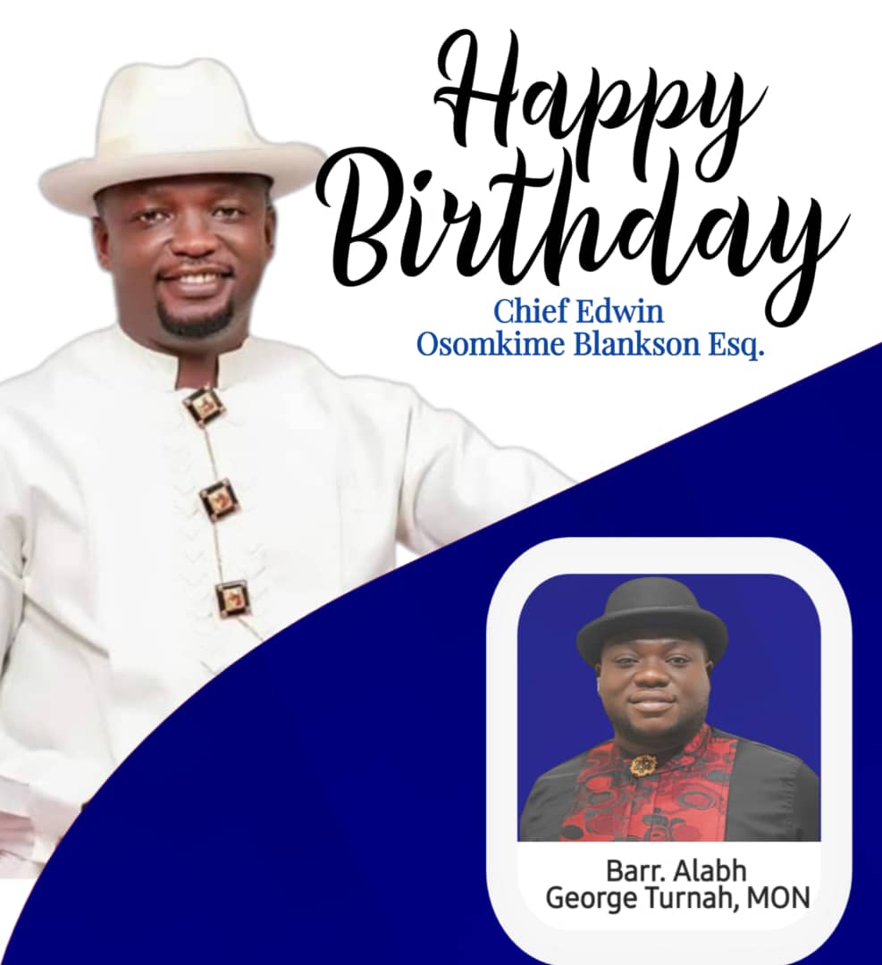 The Acting Chairman of the Peoples Democratic Party (PDP), Bayelsa State Chapter, warmly felicitates with an exceptional leader, visionary entrepreneur, accomplished legal mind, and a proud son of the Niger Delta, Chief Edwin Osomkime Blankson, Esq., on the occasion of his birthday anniversary.