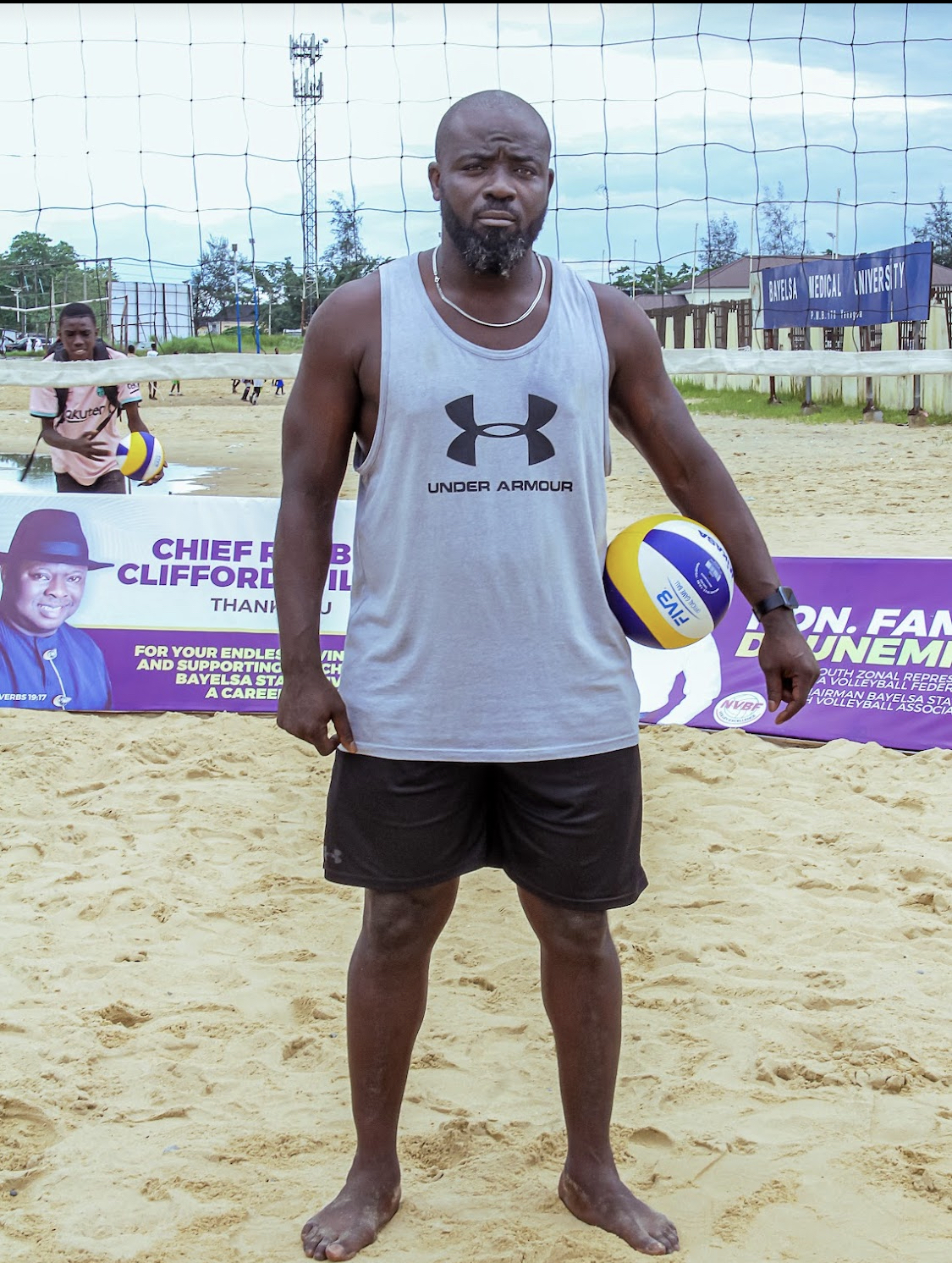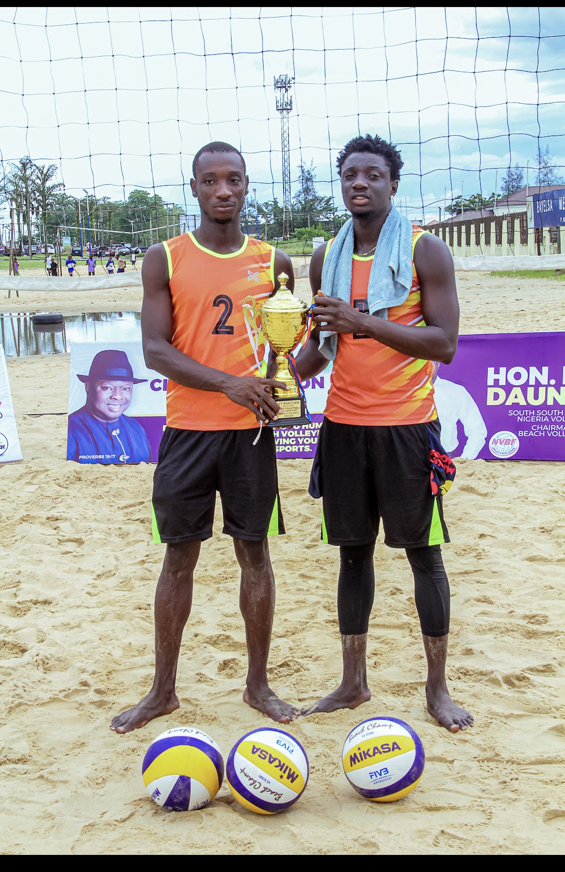 THE COACH, BAYELSA STATE BEACH VOLLEYBALL ASSOCIATION JEFFREY OSAS AND THE SECRETARY OPOIKUMO JERRY MAXWELL THANKED THE STATE GOVERNMENT FOR THEIR SPONSORSHIP. SPECIAL THANKS GOES TO THE PEOPLE’S GENERAL CHIEF REUBEN CLIFFORD FOR HIS ENDLESS SUPPORT TO HUMANITY ESPECIALLY IN THE BEACH VOLLEYBALL CHAMPIONSHIP.