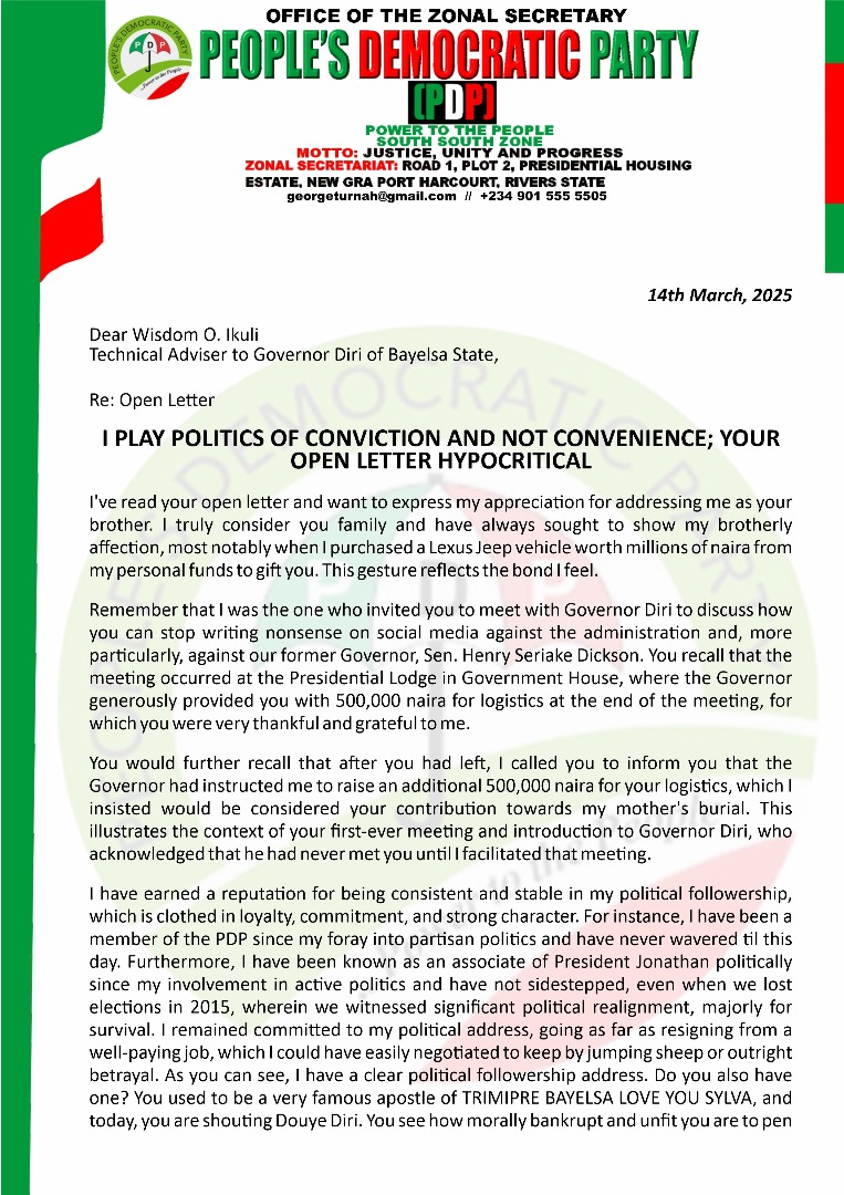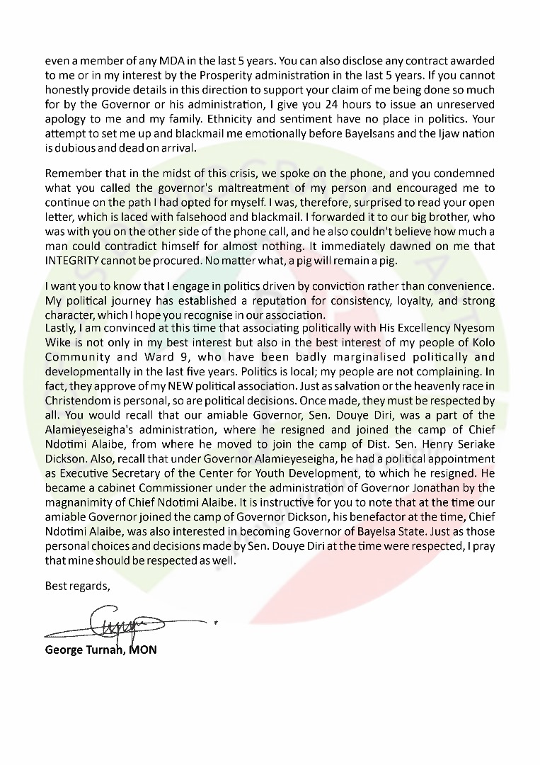 LETTER FROM GEORGE TURNAH TO WISDOM O. IKULI