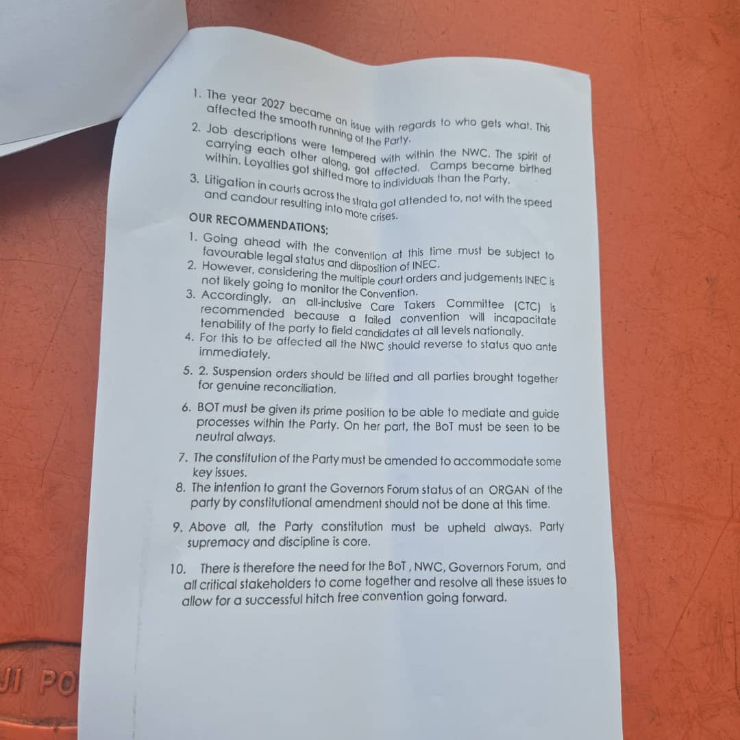 HIDDEN REPORT OF THE COMMITTEE SET UP BY PDP BOT RECOMMENDS NO IBADAN CONVENTION.....