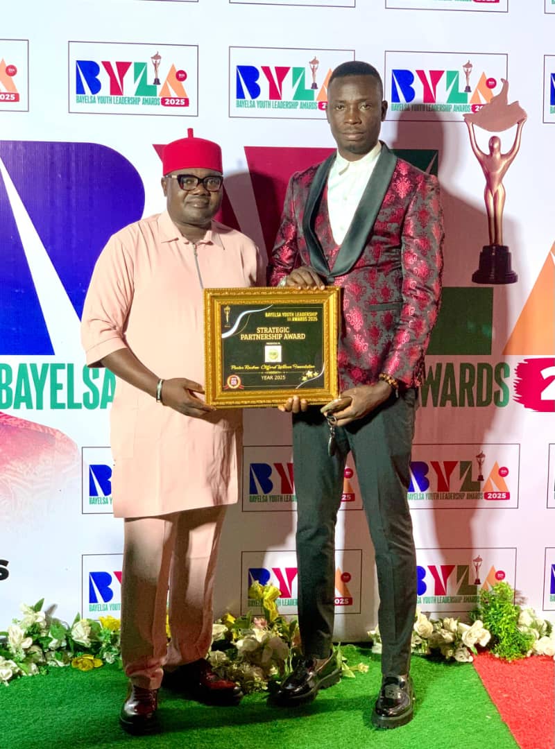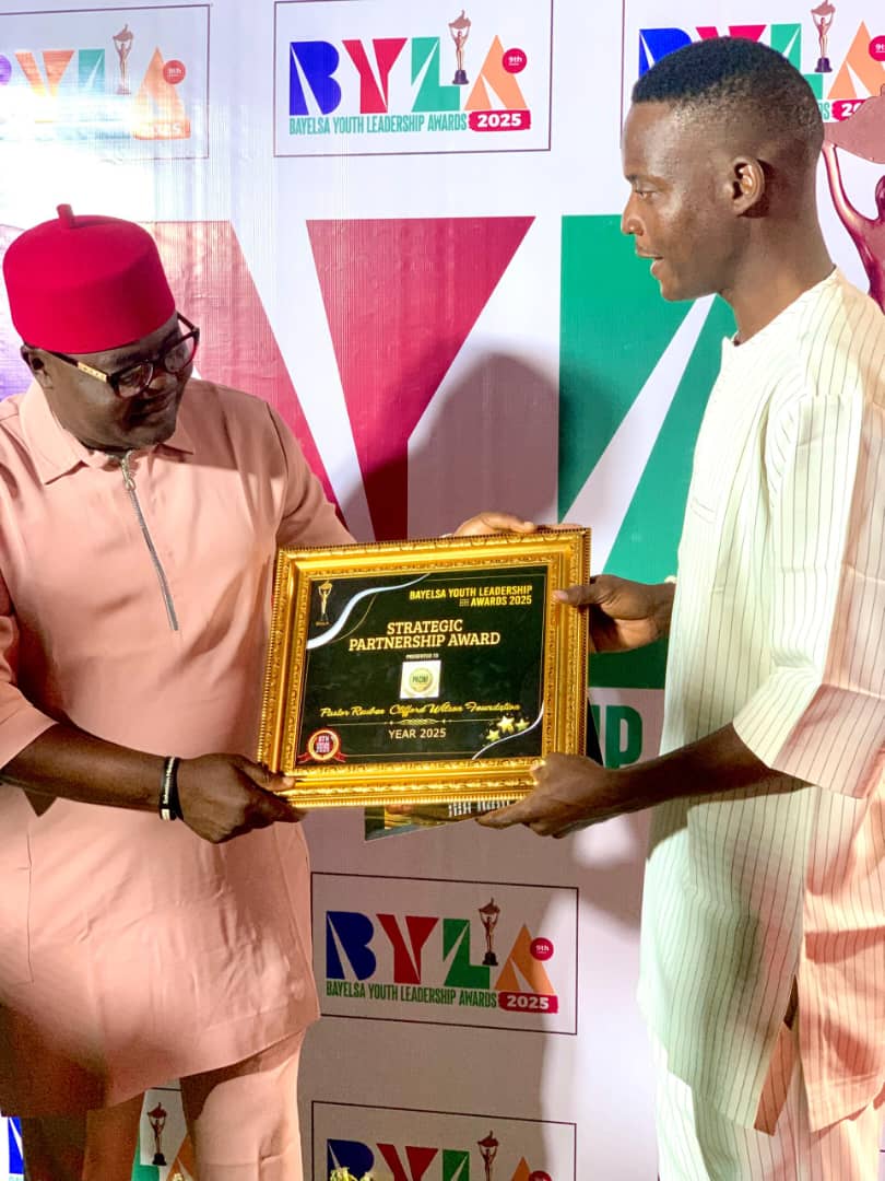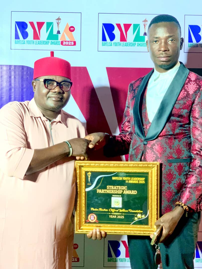 The leadership of the Bayelsa Youths Leadership Award (BYLA) is proud to honour Chief Pst Reuben C. Wilson, Member of the Governing Council, University of Uyo, Akwa Ibom State, and Founder and leader of Pst. Reuben Initiative for Good Leadership and Accountability (PRIFGLA), with the prestigious Award of the Most youth Supportive Leader. This recognition is a testament to his tireless contributions towards the growth, empowerment, and development of youths in Bayelsa State and beyond.