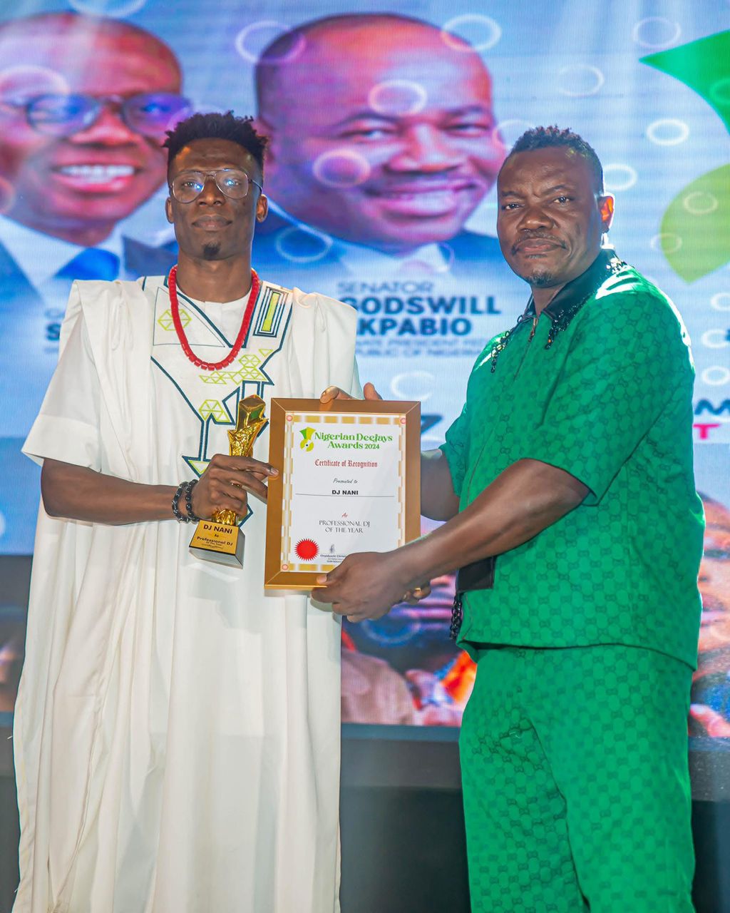 Deejay Nani who was crowned with the prestigious honour of Professional Deejay Of The Year Award joined the list of others who were honoured for their contribution in raising the bar of entertainment in the country.