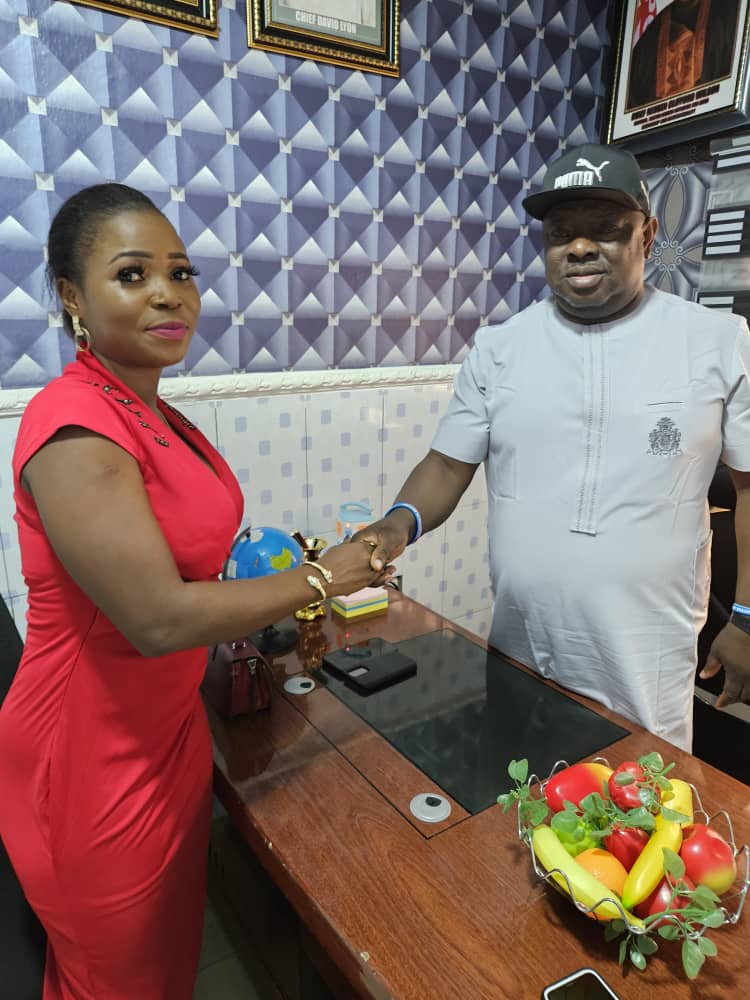 The founder Pastor Reuben initiative for Good leadership and Accountability Chief Reuben Clifford Wilson received in courtesy visit the first elected female Chairman of the Actors Guild of Nigeria AGN Bayelsa state Chapter Athy Nestor Oki.
