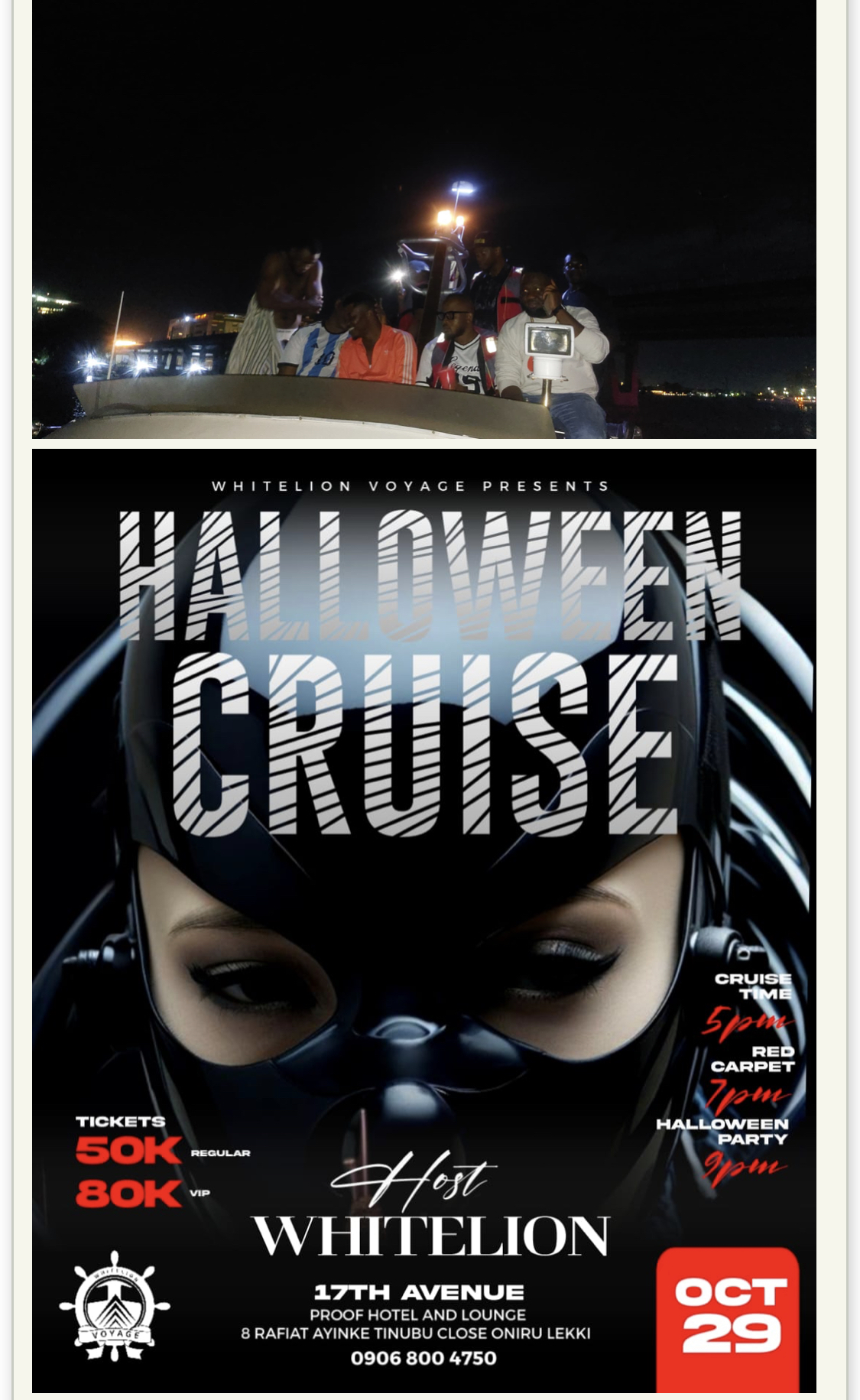 October 29, 2023 will be one of the most memorable days in the history of Lagos social life as residents troop out for boat cruise tagged, Halloween Cruise.