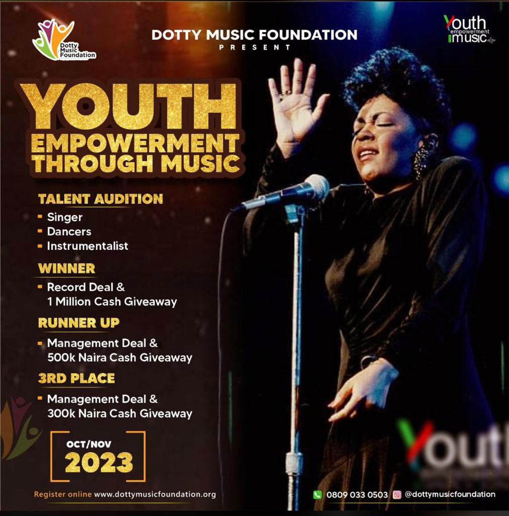 Dotty Music Foundation says the winner of the talent hunt will smile home with a whopping N1m in addition to a sign on with a record label.