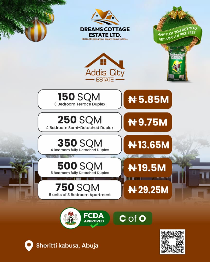 Dreams Cottage Estate Ltd reaffirmed its commitment to bridging the housing gap by offering secure, well-planned and affordable residential solutions. The company said it remains driven by the vision of enabling more Abuja residents to become property owners without financial strain.