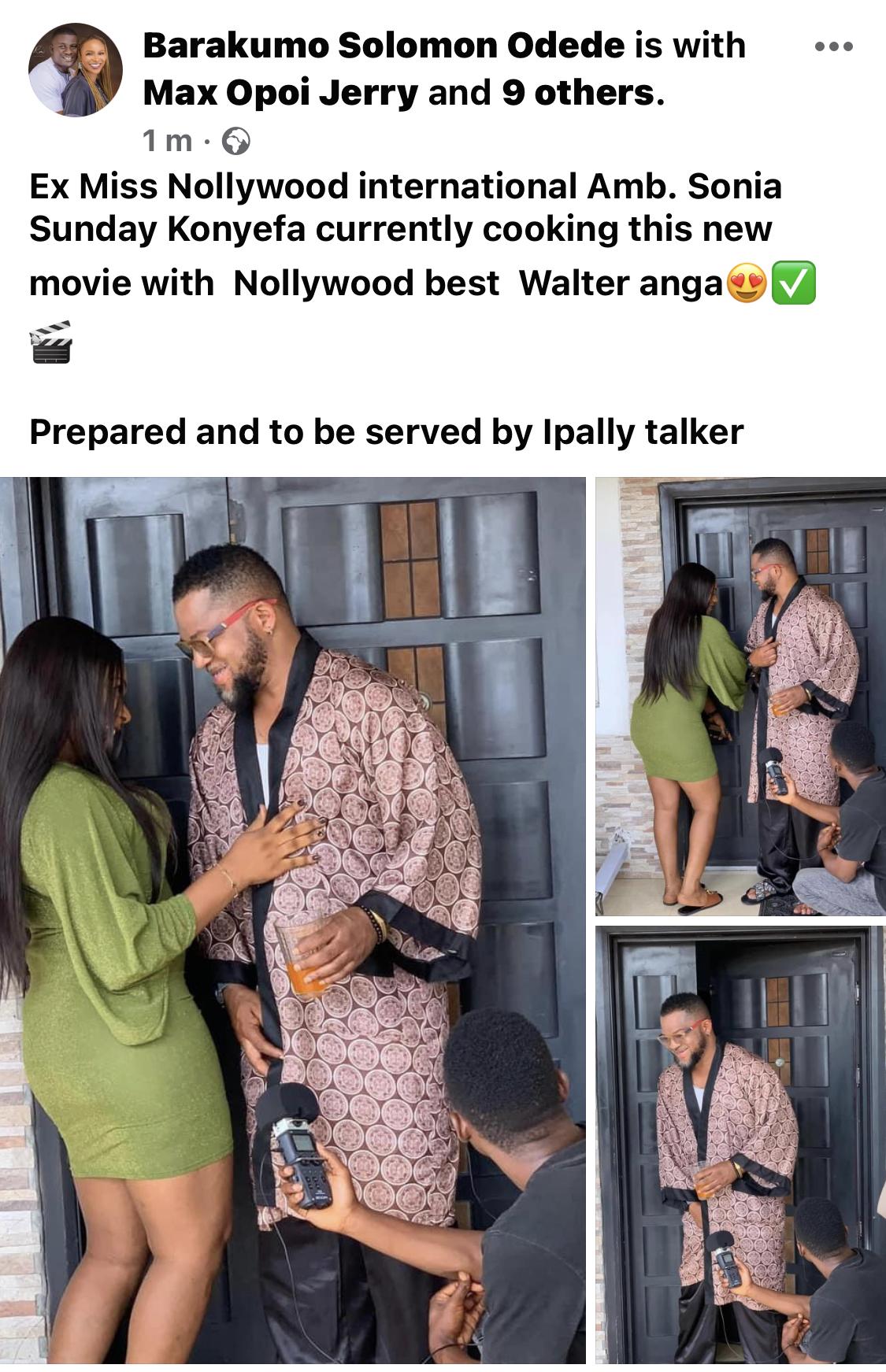 Ex Miss Nollywood international Amb. Sonia Sunday Konyefa currently cooking this new movie with Nollywood best Walter anga😍✅🎬