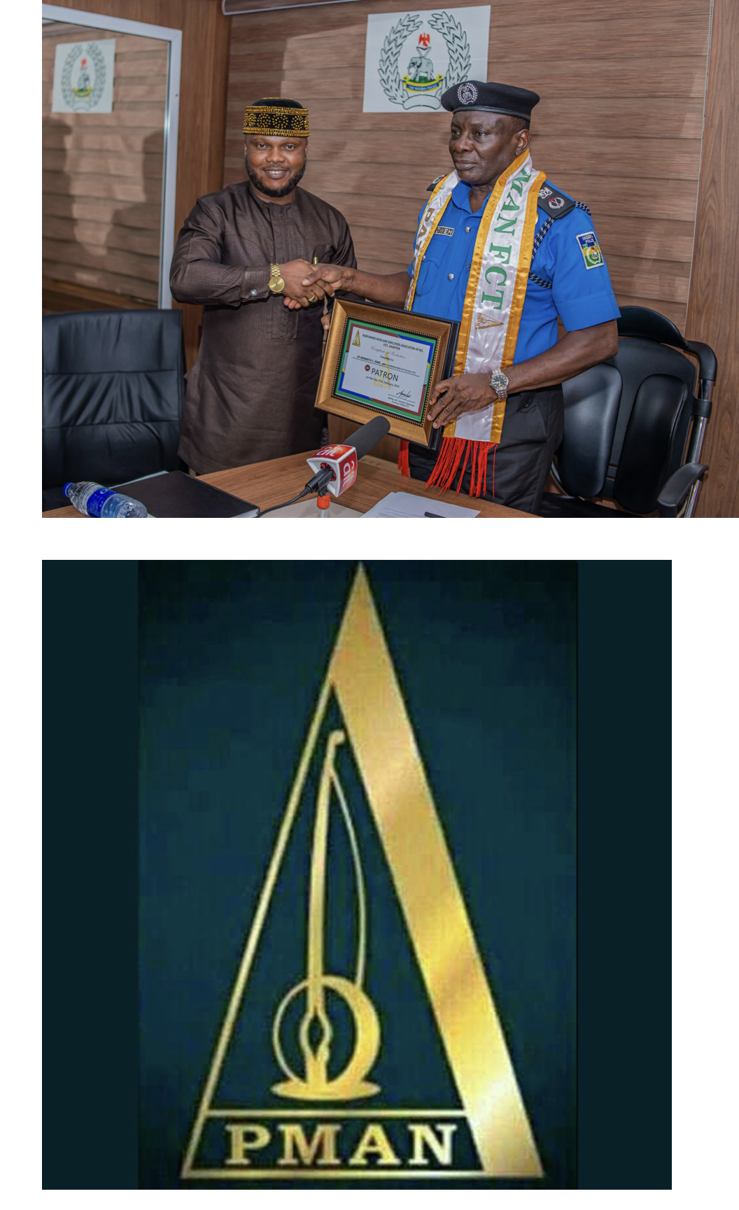 The FCT PMAN executives led by Sydney Sparrow, also inducted CP Igwe as a Patron .