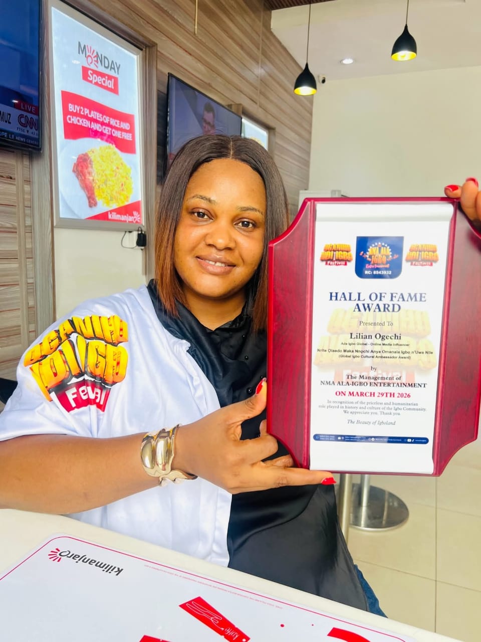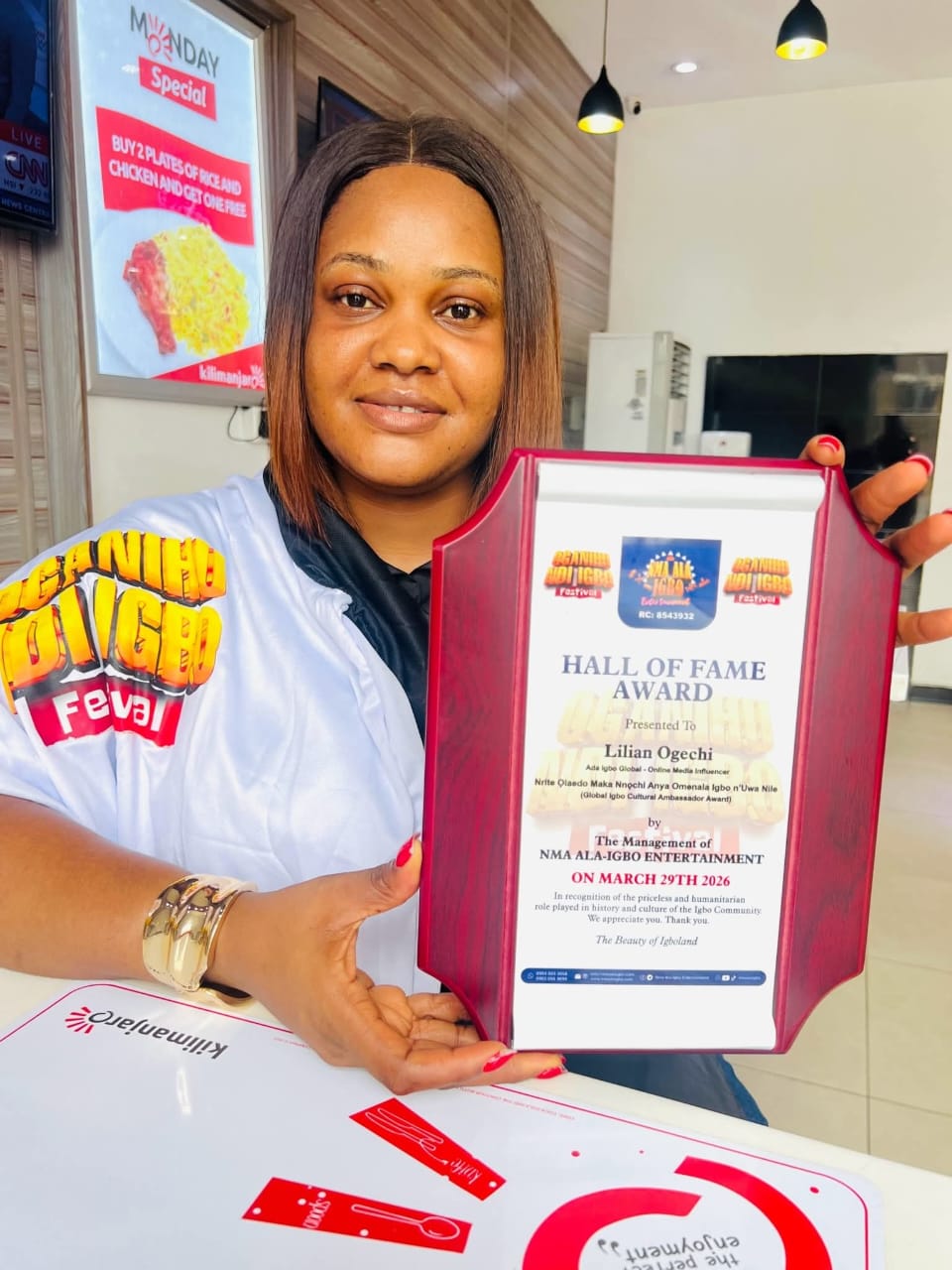 The award, presented by the management of Nma Alaigbo, celebrates Lilian’s consistency and dedication through her widely followed cultural platform, Adaigbo Global, where she has built a strong community of thousands of followers committed to preserving and celebrating Igbo identity.