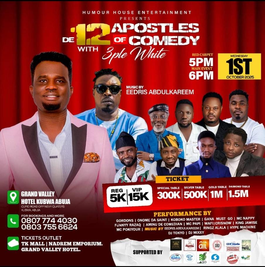 This Independence Day Comedy show holds at Grand Valley hotel, Kubwa Abuja and will witness massive entertainment as never seen before.
