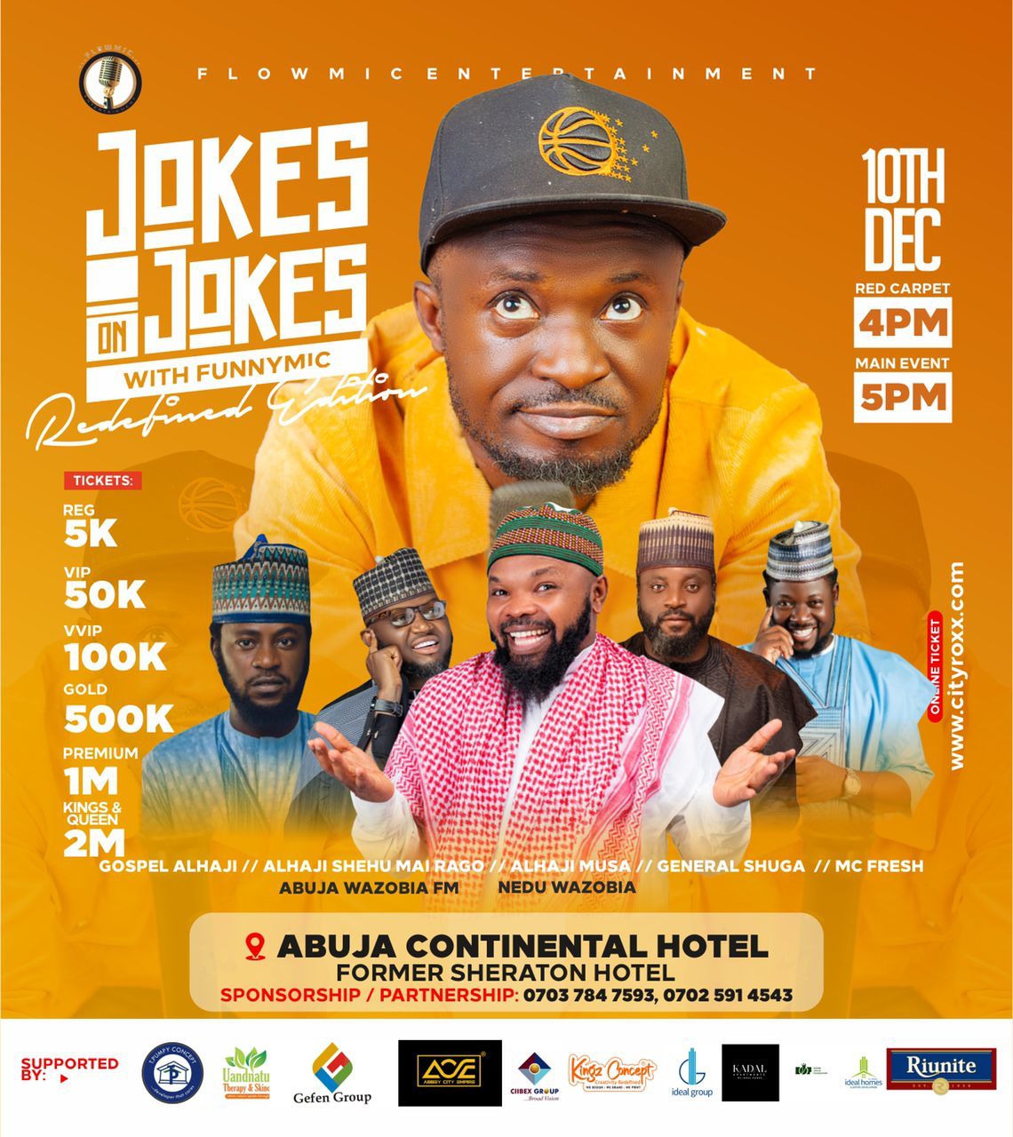 One of Abuja finest comedians, MC and event compere, Funnymic is set to hit the city with his Joke on Jokes on Sunday, Dec. 10, 2023. It is called the redefined edition.