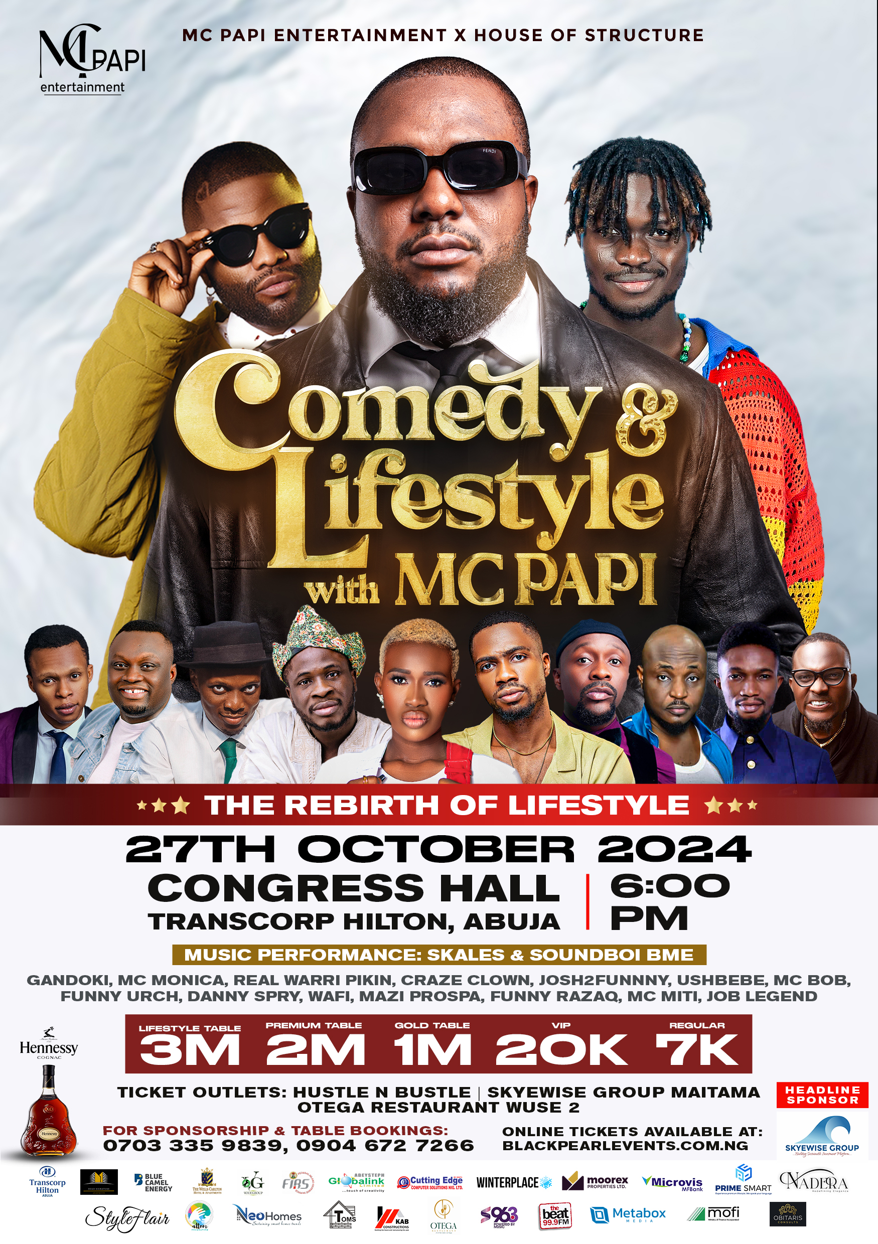 Renowned entertainment icons are set to perform at the long-awaited Comedy and Lifestyle being hosted by MC Papi Entertainment in collaboration with House of Structure, a brain child of entertainer, Osazee Samuel Aikhionbare, better known by his stage name “MC Papi”.