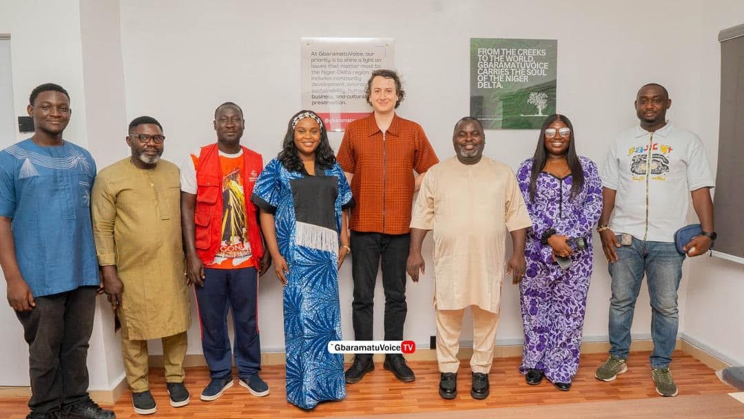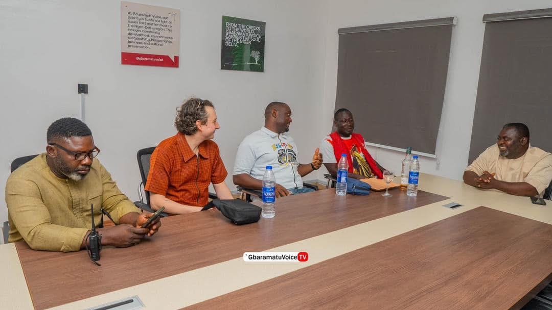 Welcomed by GbaramatuVoice CEO/MD Jacob Abai, Managing Editor Enaibo Asiayei, COO Vanessa Abai, and other team members, the meeting focused on amplifying Niger Delta narratives globally, fostering collaborations, and leveraging media for regional development. Discussions also highlighted the upcoming Niger Delta Media Skill Training Academy, which aims to equip young professionals with essential media skills.