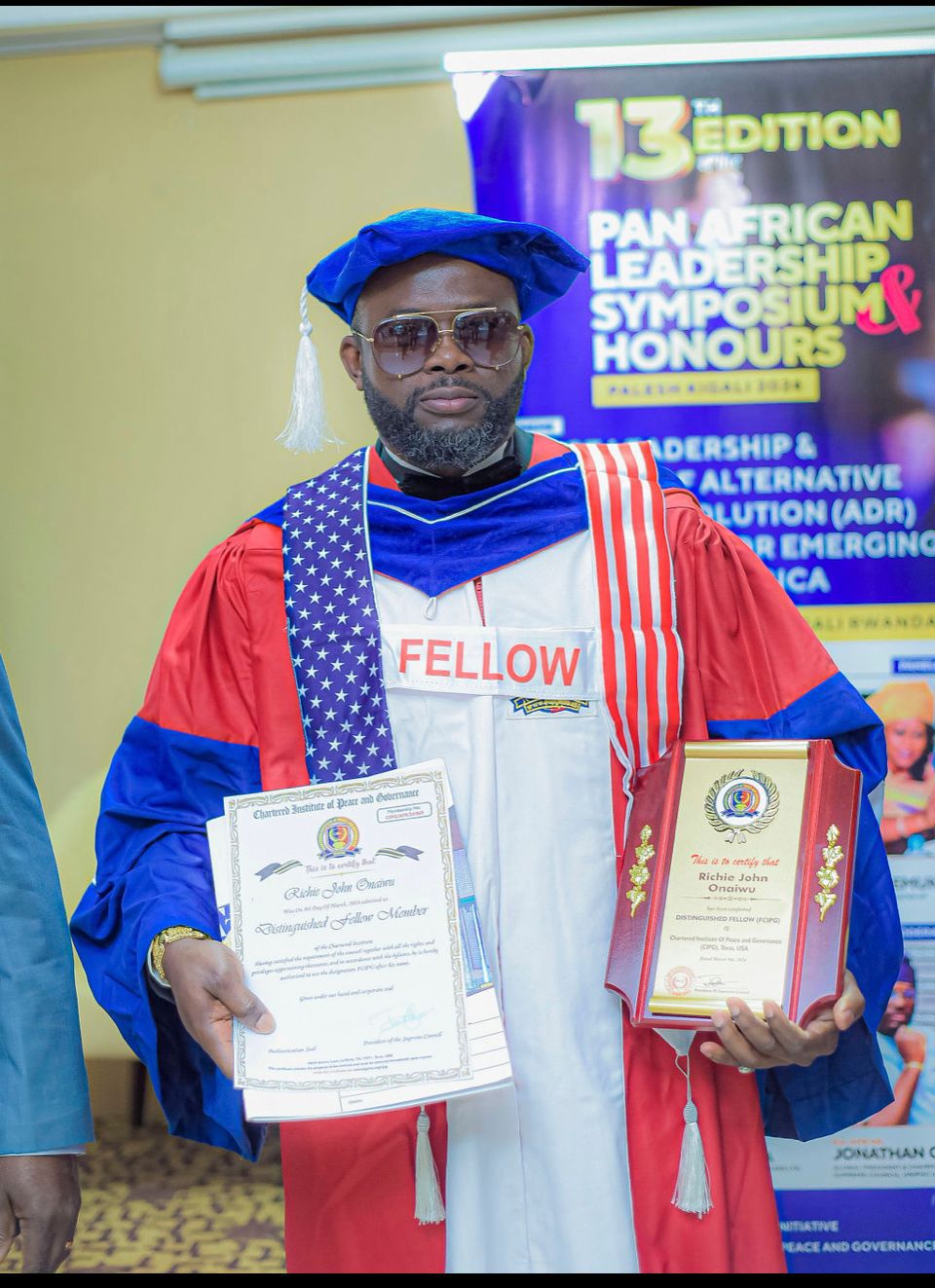 In a momentous ceremony on March 9, 2024, Dr. Richie John Onaiwu, renowned CEO of RichieRich Global Group of companies, was bestowed with an honorary doctorate in Leadership and Business Management by America University of Peace & Governance (AUPG), Texas, USA. The distinguished occasion also marked Dr. Richie’s investiture as a distinguished Fellow (FCIPG) of the esteemed Chartered Institute of Peace and Governance (CIPG).