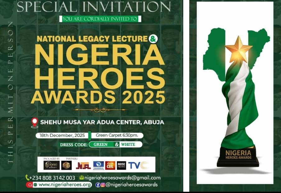 The National Legacy Lecture & Nigeria Heroes Awards 2025 serves as a platform to honour leadership, patriotism, and service to humanity. It serves as a bridge between the heroes of the past, the stewards of present, and the visionaries shaping the future, organisers say.