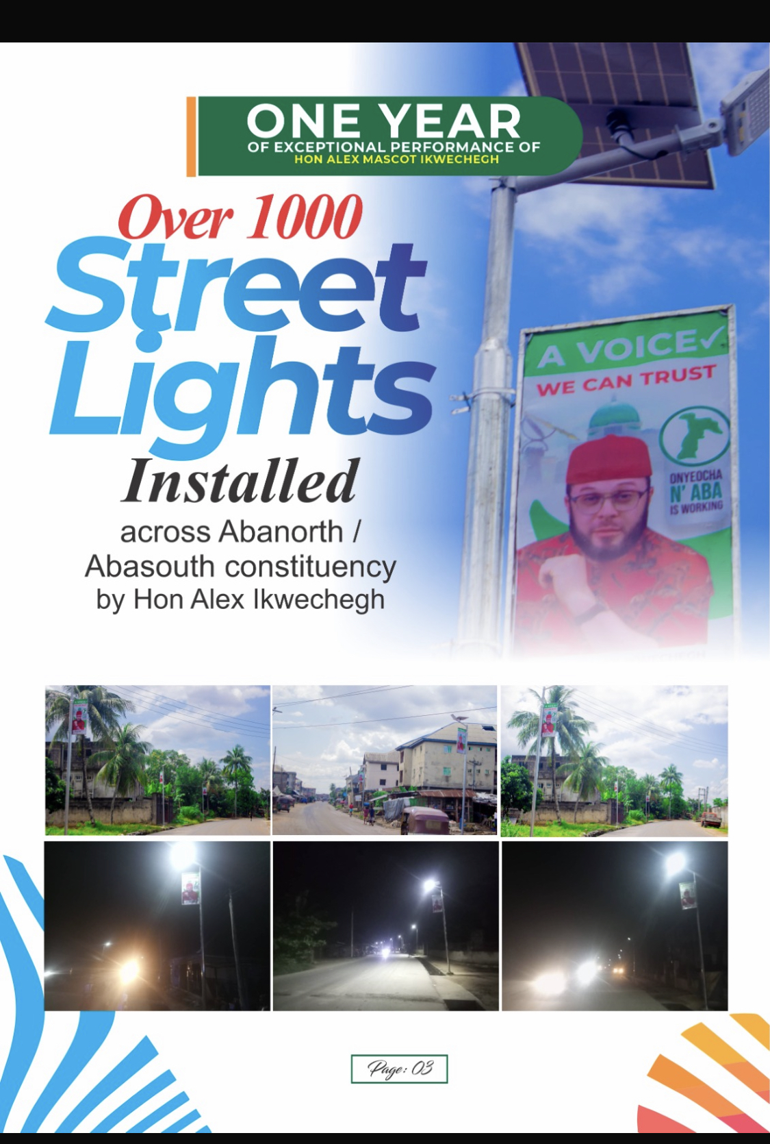 Within a year, Hon. Ikwechegh has championed numerous infrastructure projects, including road rehabilitation and expansion, attraction of over 15 electricity transformers to Aba North and South. This has significantly improved power supply, augmenting productivity, commercial activities, and security in the area. Additionally, he has purchased over 1500 solar-powered streetlights, illuminating the streets and further enhancing security at night.