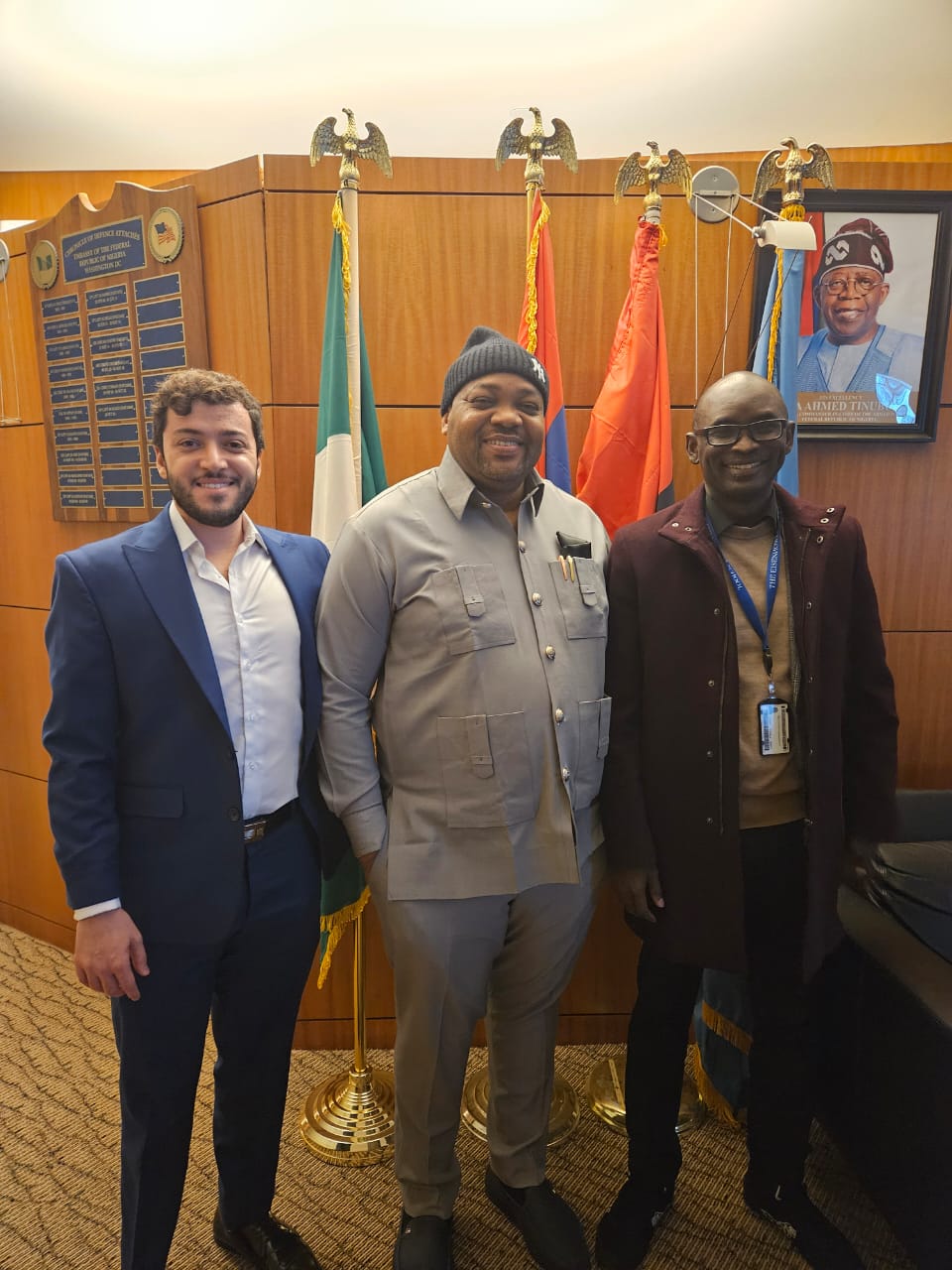 During thf meeting, he met with Nigerian Defence Attachè to USA, Group Capt Kalgo and US International Defence Consultant, Danny Abomoustafa.
