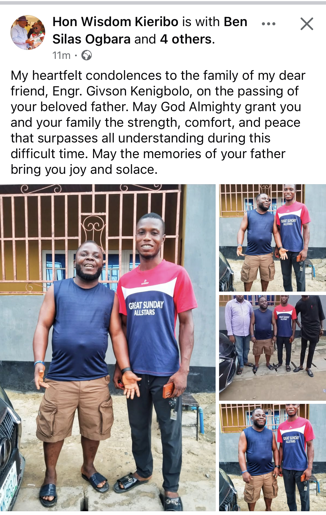 My heartfelt condolences to the family of my dear friend, Engr. Givson Kenigbolo, on the passing of your beloved father. May God Almighty grant you and your family the strength, comfort, and peace that surpasses all understanding during this difficult time. May the memories of your father bring you joy and solace.