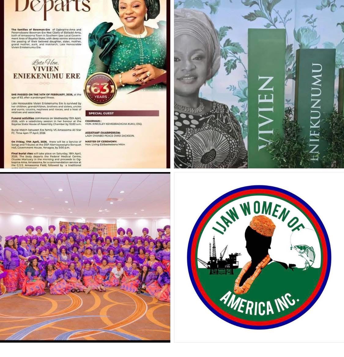 The Ijaw Women of America (IWA) have paid a heartfelt tribute to the late Hon. Vivian Ere, describing her as a committed advocate of Ijaw unity and development, during her burial ceremony.