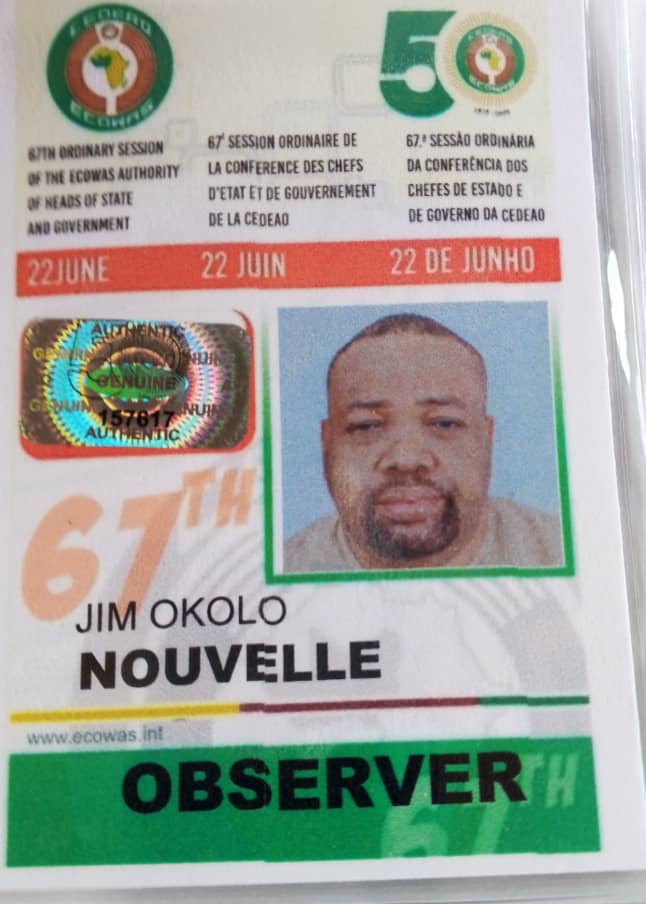Hon. Jim Okolo Chimezie, a UN accredited international election observer and the Nigerian National Coordinator, Nouvelle Perspective International earlier in the week joined other dignitaries at the 67th Ordinary Session of the ECOWAS Summit in Abuja where Nigerian President, Bola Tinubu handed over the chairmanship of the ECOWAS Authority of Heads of State and Government to President Julius Maada Bio of Sierra Leone.