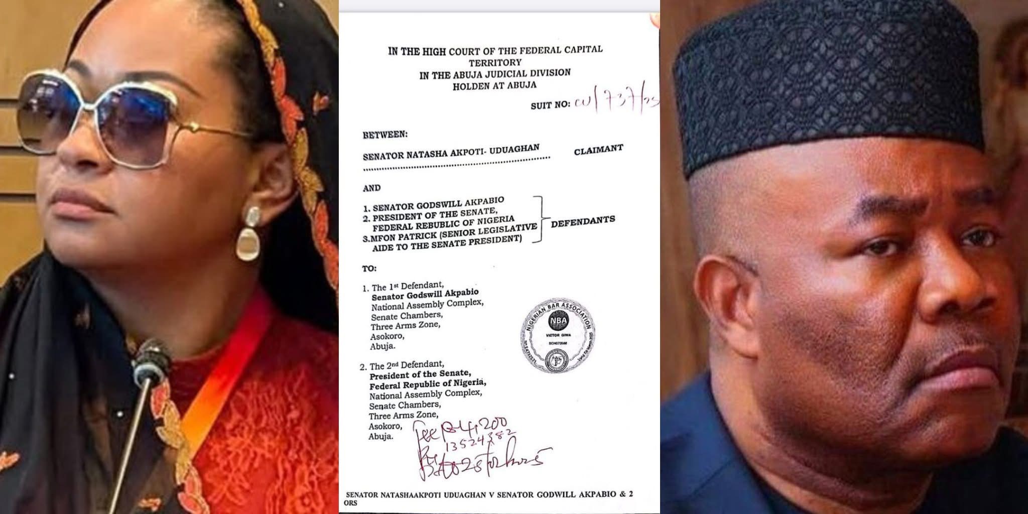 Senator Natasha Akpoti-Uduaghan has filed a lawsuit against the President of the Senate, Senator Godswill Akpabio, for alleged defamation.