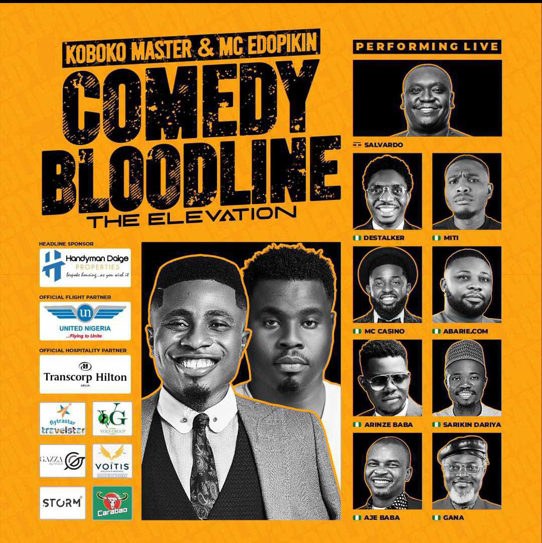 Nigerian Comedians, Bernard Gbadamosi popularly known as “Koboko Master” and MC “Edo Pikin” will be hosting the annual “Comedy Bloodline” tagged “The Elevation”.