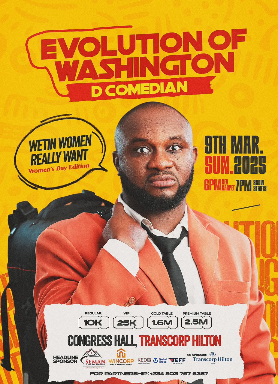 It will be a day of rolling laughter and excitement as top comedians, musicians, actors and others from beauty pageant industry are set to thrill guests at the 2024 of Evolution Of Washington tagged, “Wetin Women Really Want”.