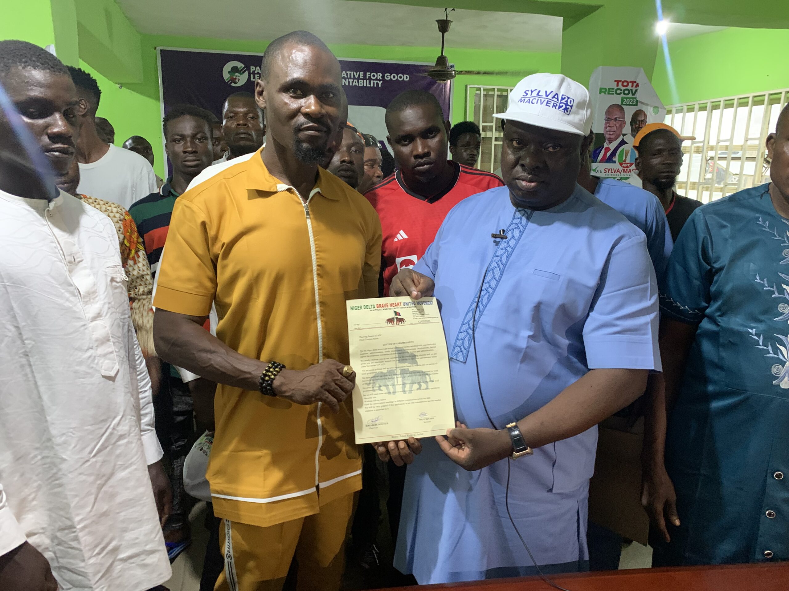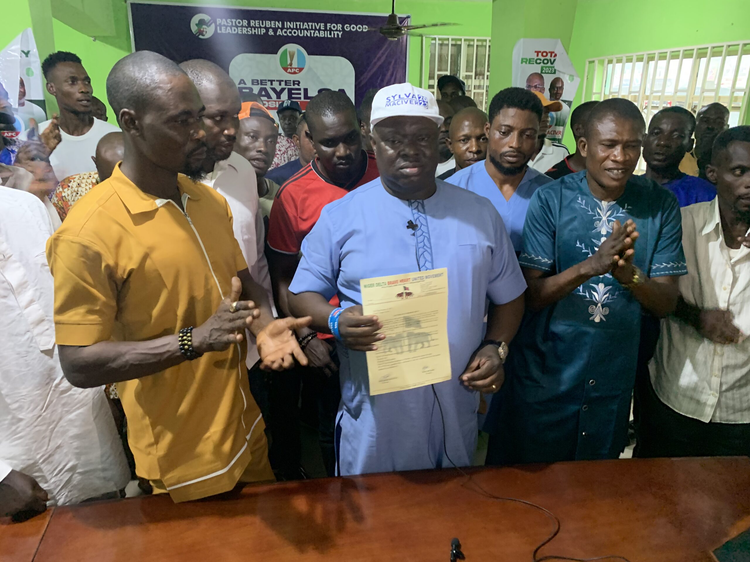 The leadership of Niger Delta Brave Heart united Movement today visited the Southern ijaw Coordinator of the sylva/MacIver Campaign organization who is the founder of the Pastor Reuben initiative for Good leadership and accountability Chief Reuben Clifford Wilson at the National Secretariat to throw support for Chief Timipre Sylva and Great Joshua MacIver as they unanimously Endorsed the APC Governorship Candidates saying the time is ripe for the state to attract massive development.