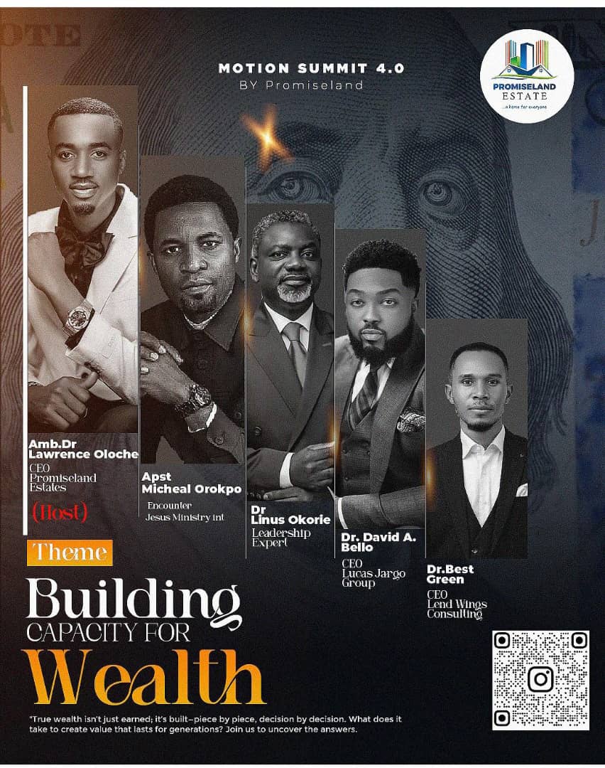 To be hosted by the CEO Promiseland Estate, Amb. Dr. Lawrence Oloche Emmanuel, those to speak include, renowned leadership coach, Dr. Linus Okorie, Apst. Micheal Orokpe of Encounter Jesus Ministry International, Dr. David A. Bello the CEO Lucas Jargo Group, Dr. Best Green the CEO Lead Wings Consulting and more.