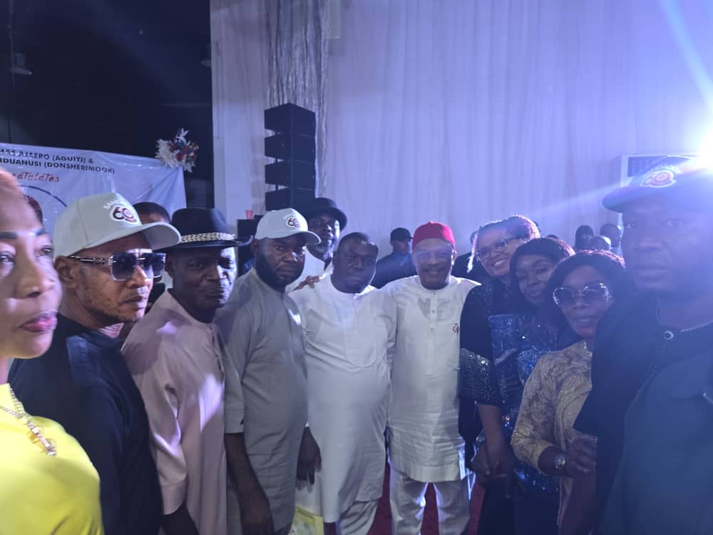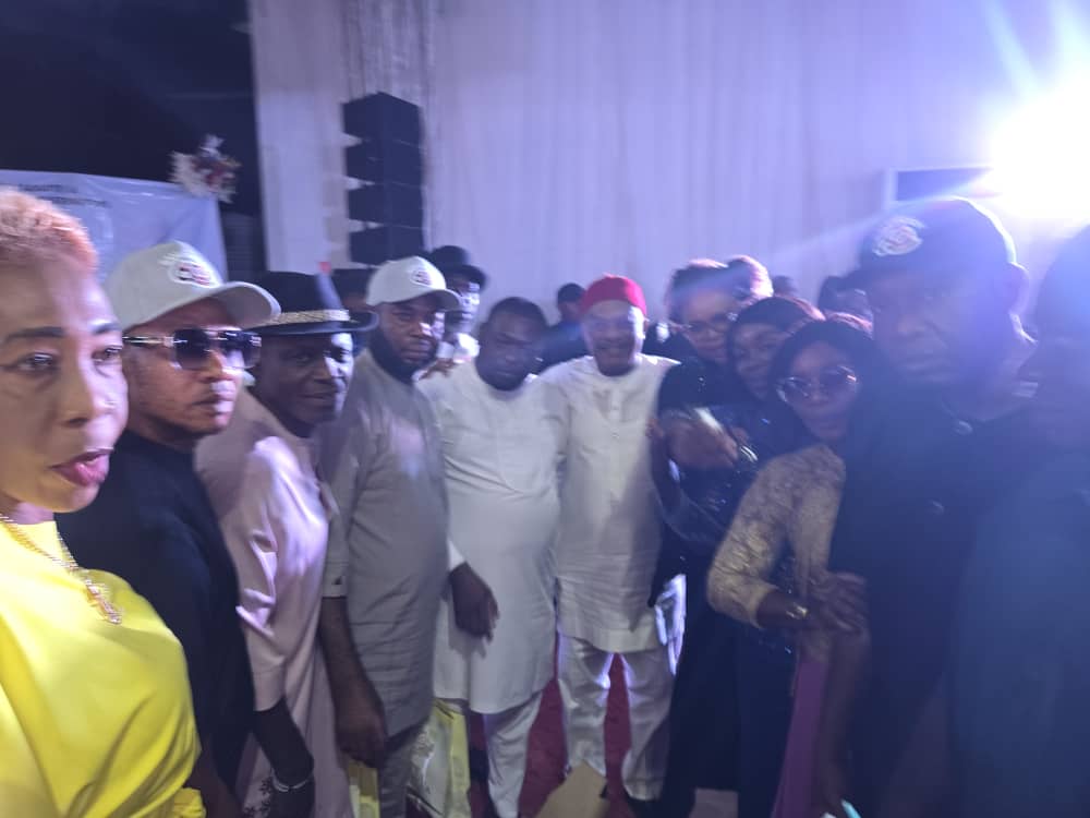 Members of the Bayelsa State Chapter Caretaker Working Committee of the PDP in a group photograph with the National Secretary of the Party Sen. Samuel Anyanwu in Owerri, Imo State today during the 60th birthday celebration of the National Secretary