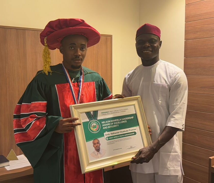 Abuja Nigeria – In a momentous ceremony on Monday, 27th May 2024, Nathaniel Oluebube Promise was conferred with the esteemed title of ECOWAS Youth Ambassador and presented with the prestigious Nelson Mandela Leadership Award of Excellence & Integrity. This dual honor recognizes his remarkable contributions to the development of African society, his tireless efforts in empowering youth and women, and his unwavering commitment to excellence and integrity.