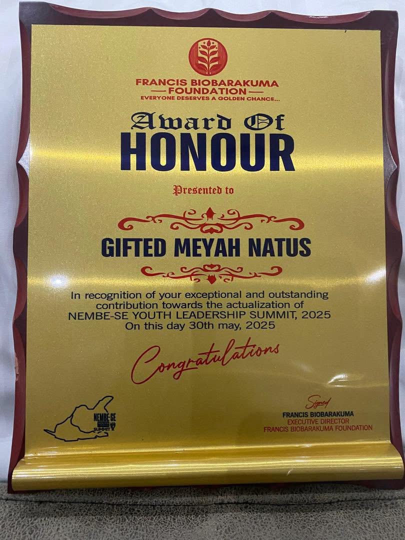 NATUS RECEIVES PRESTIGIOUS AWARD FROM EASTERN BAYELSA, RECOGNIZING HIS TIRELESS EFFORTS IN EMPOWERING YOUTH AND FOSTERING POSITIVE CHANGE.