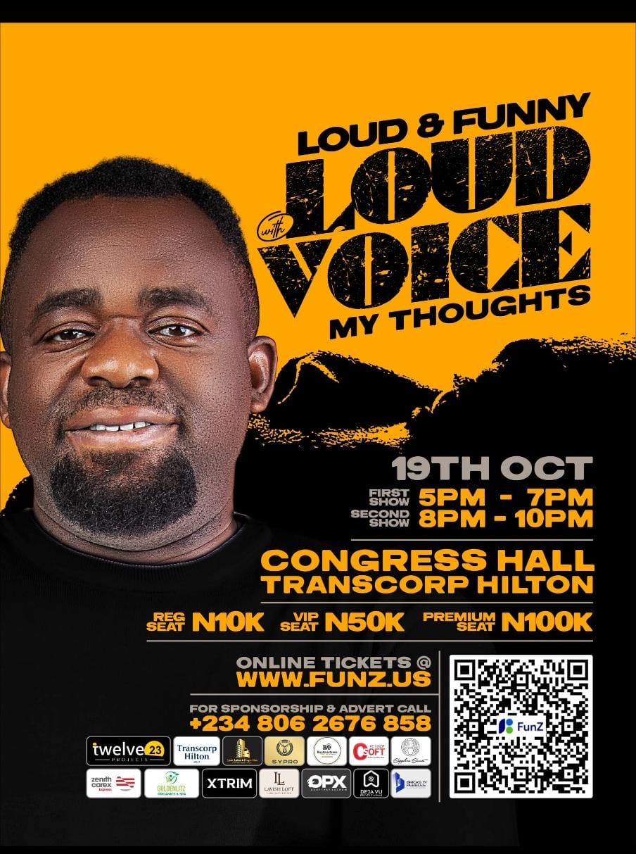 His “My Thoughts” comedy show will take place at the Congress Hall of Transcorp Hilton Hotel Abuja where notable personalities from political and business cycles are also expected in attendance.