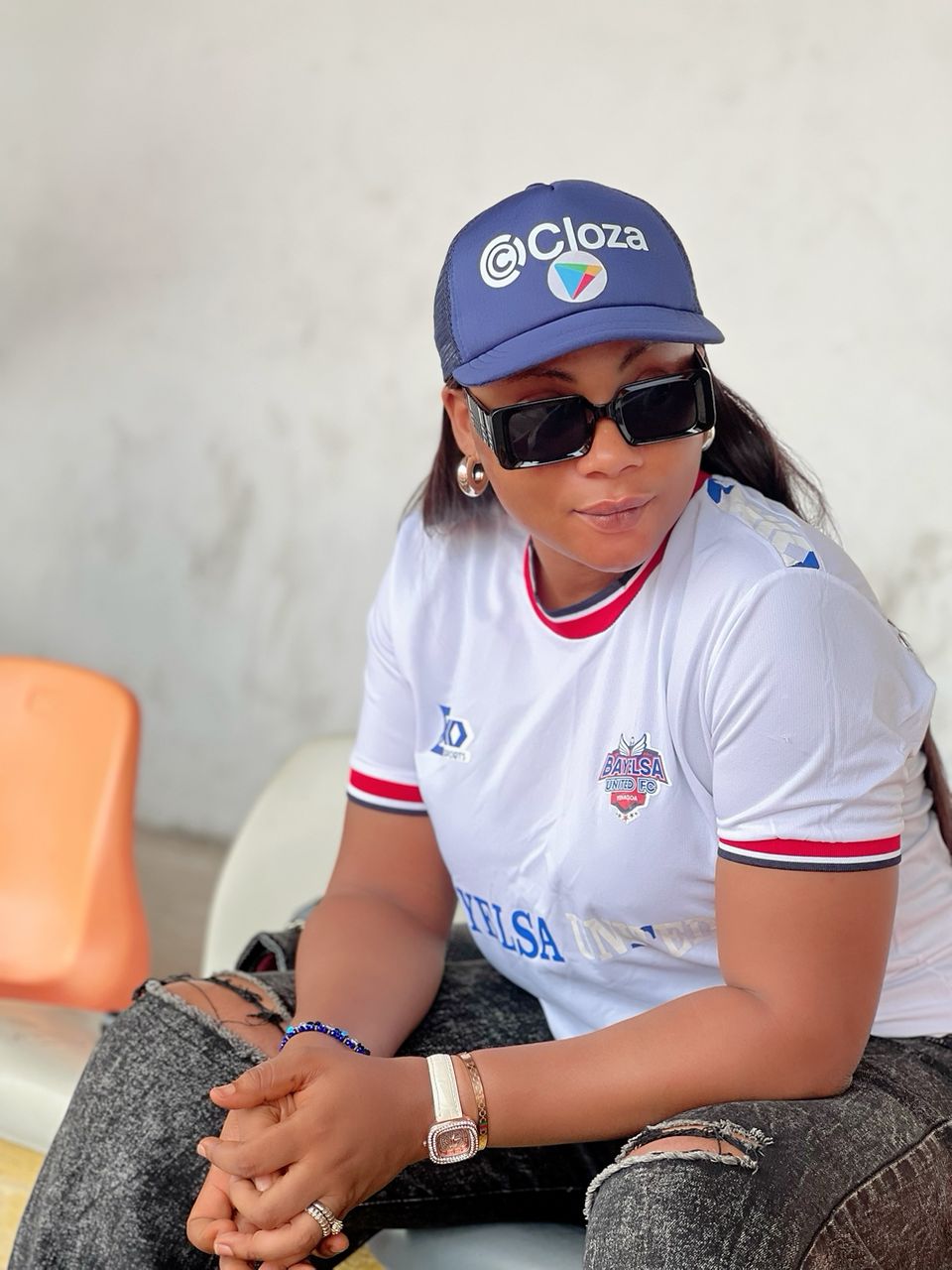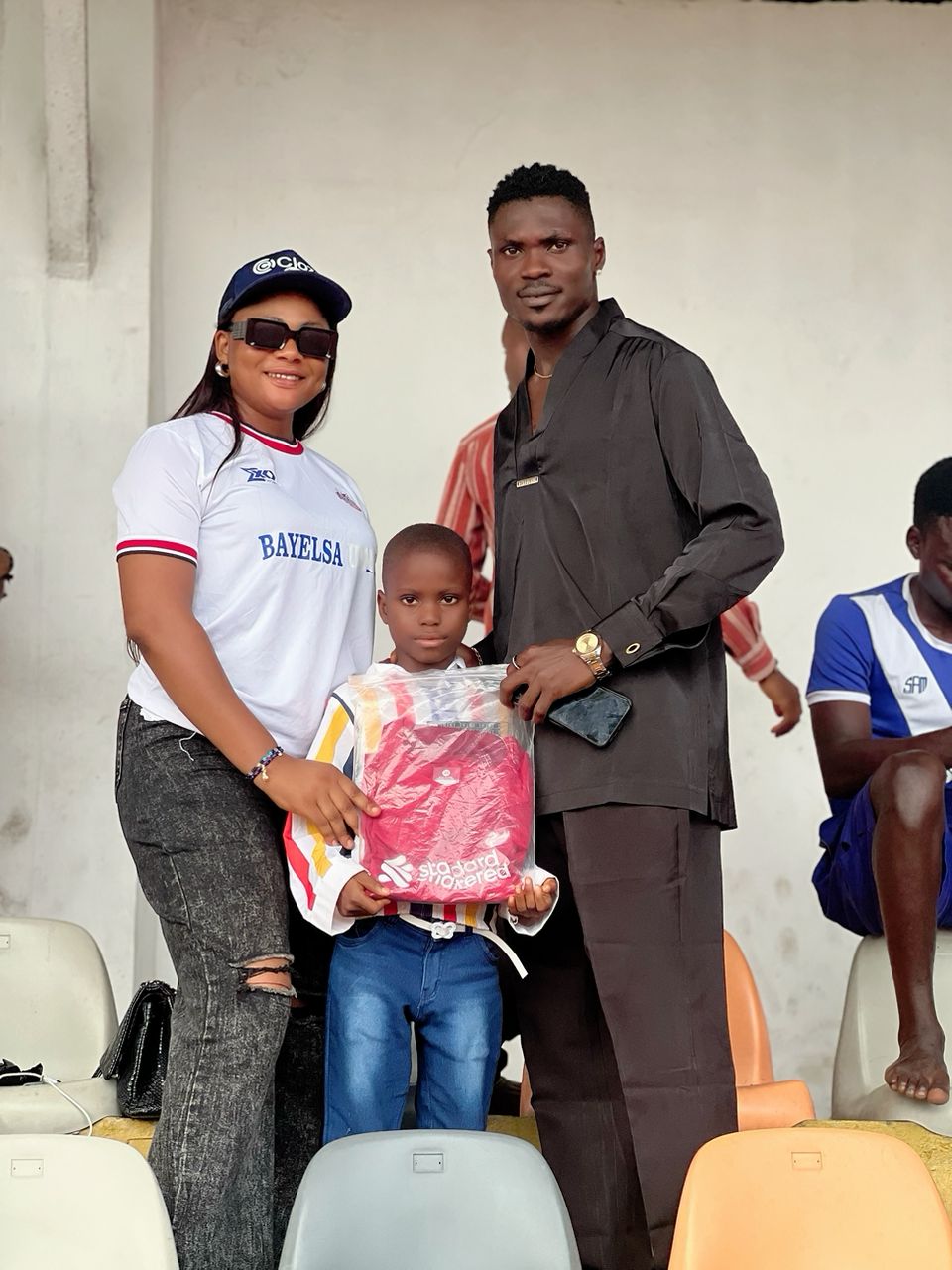 Ex Miss Nollywood International and fast Rising Actress Amb. Sonia Sunday Konyefa today presented a Pair of Jersey to a little girl at the Samson Siasia Stadium Yenagoa where she went to enjoy the Bayelsa United vs Remo stars Game.