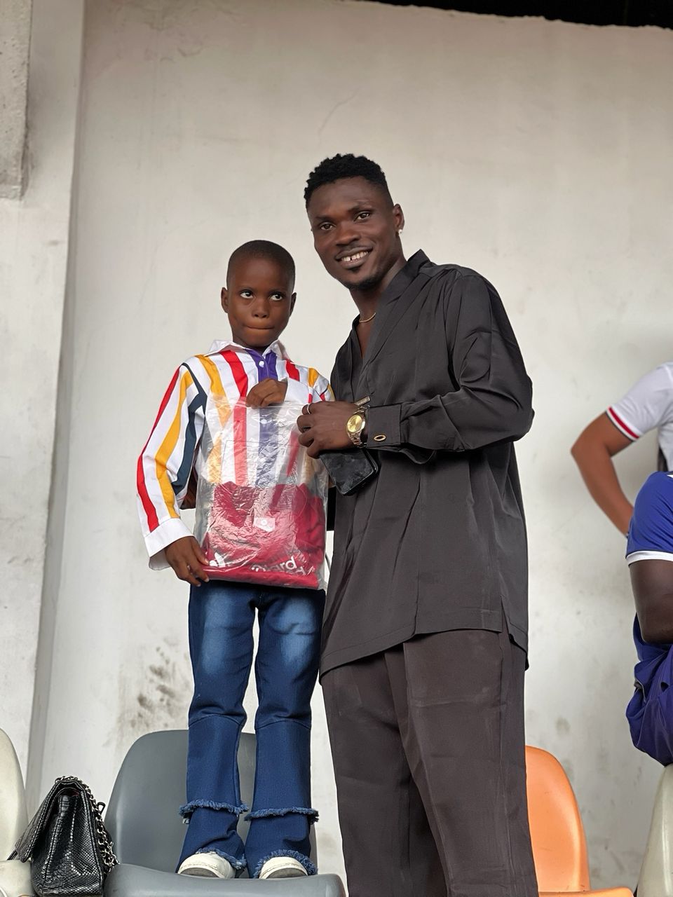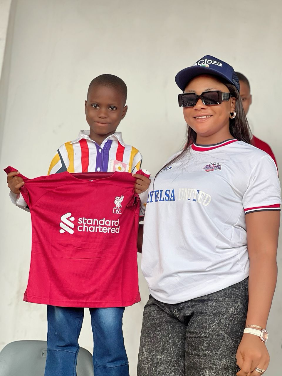 The pair of Jersey was presented to the little girl in Company of Bayelsa United’s top scorer last season ROBERT MIZO who now plays for AL waab Sports Club of Qatar