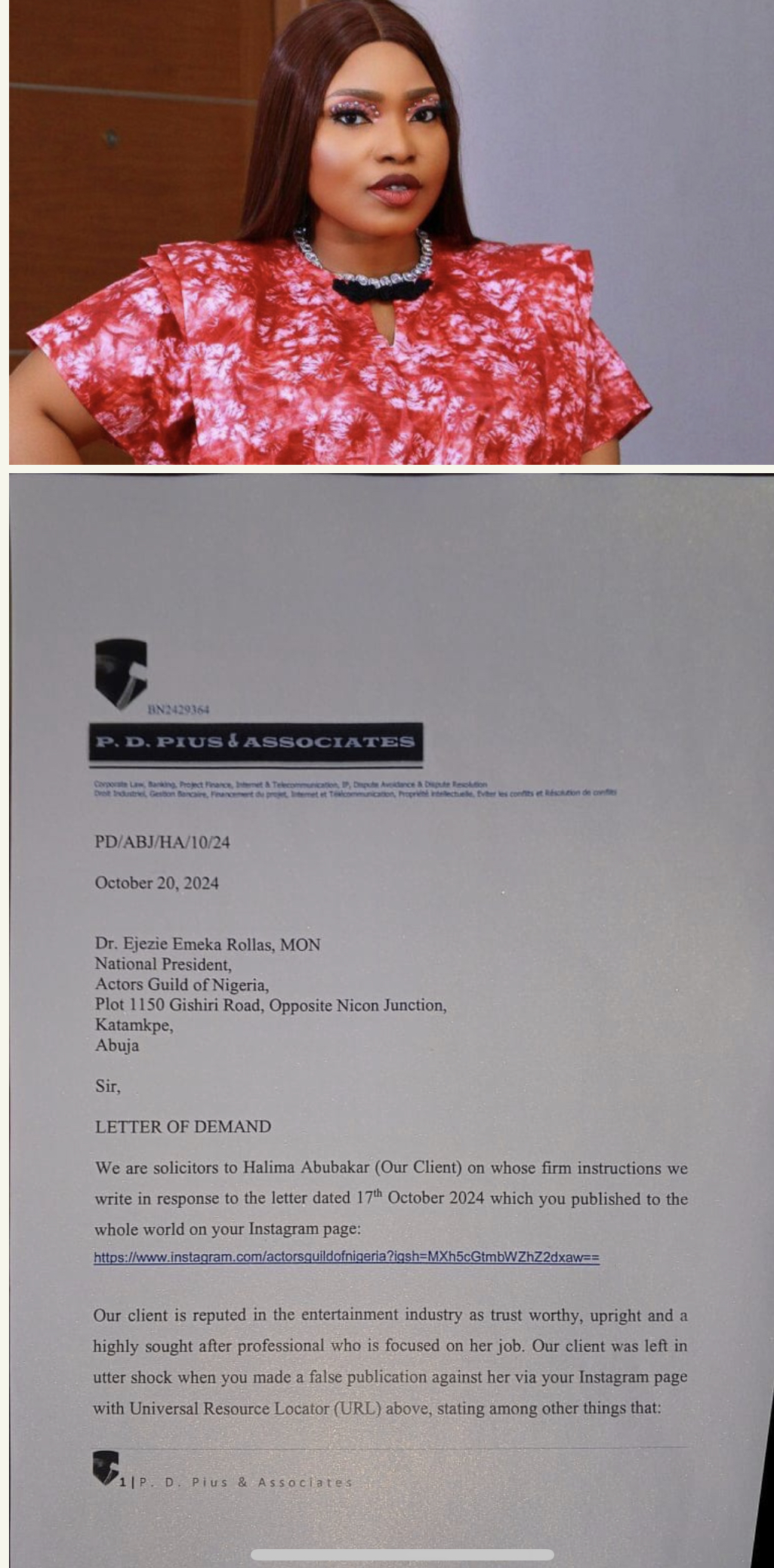 On October 20, 2024, Halima’s legal team, P.D. Pius & Associates, sent a scathing letter of demand to Rollas, condemning his statements as “false publications” that have tarnished her reputation.