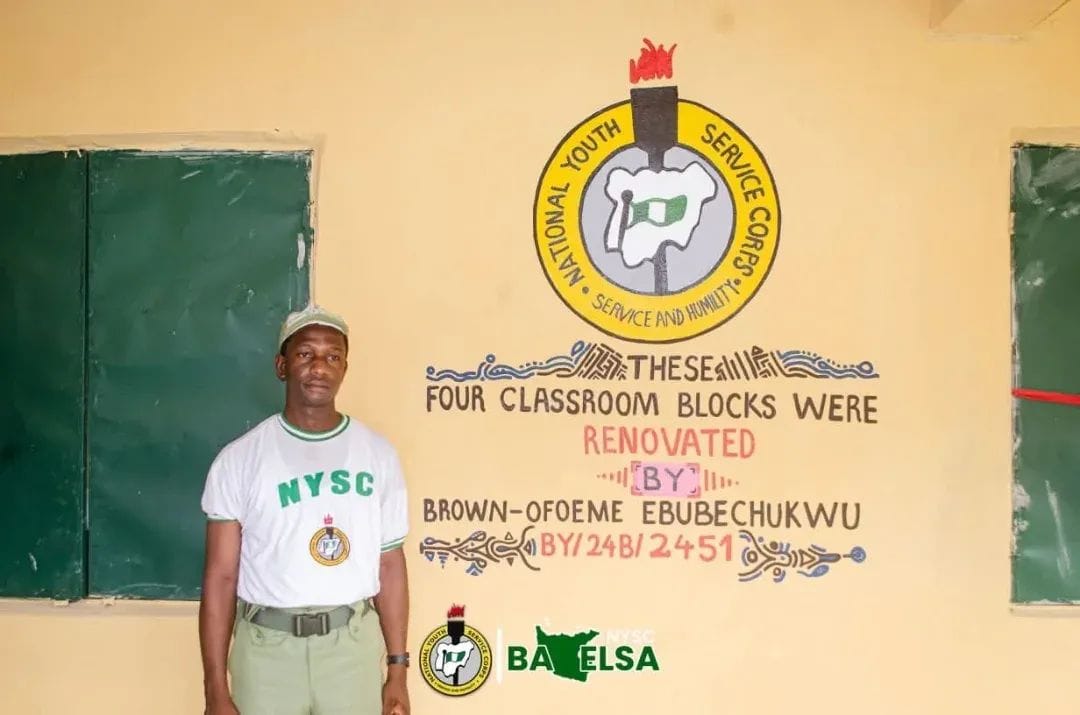 NYSC Corps Member Brown-Ofoeme Renovates Four-Classroom Block in Bayelsa State After Seeing Pupils Soaked in Rain