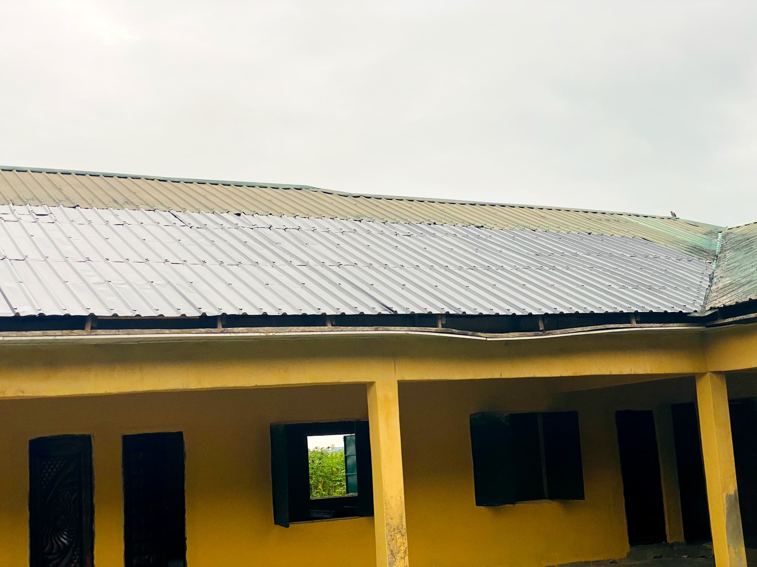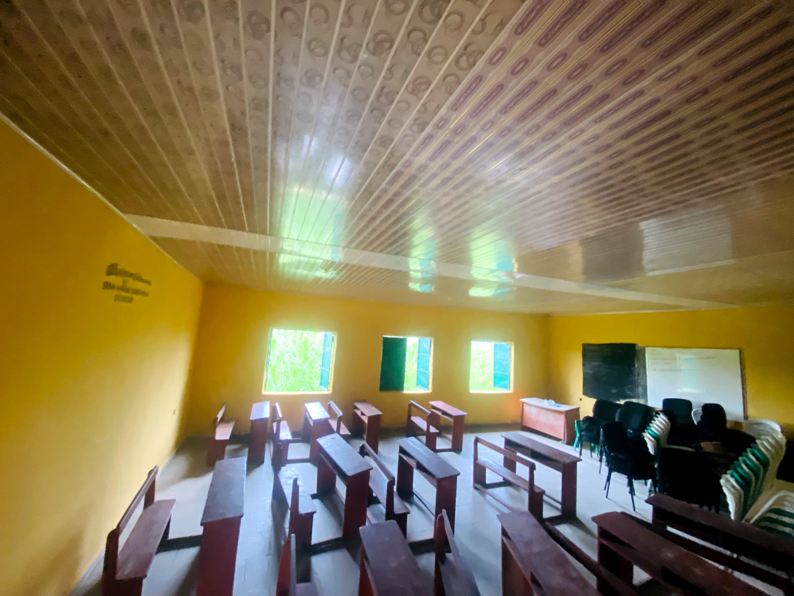 The renovation included re-roofing of four classroom blocks, installation of PVC ceilings, installation of 9 doors and 24 windows, and total repainting of the classrooms and administrative office.