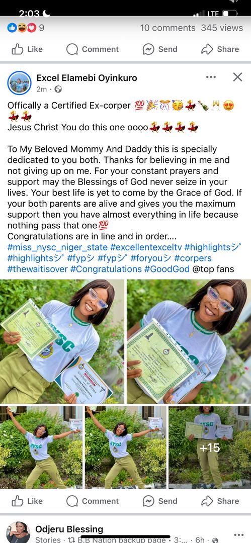 “The Management of Miss Nollywood organization would like to extend their warmest congratulations to our esteemed Ex Miss Nollywood Nigeria Excel Elamebi Oyinkuro on her outstanding success during her National Youth Service Corps (NYSC) program.