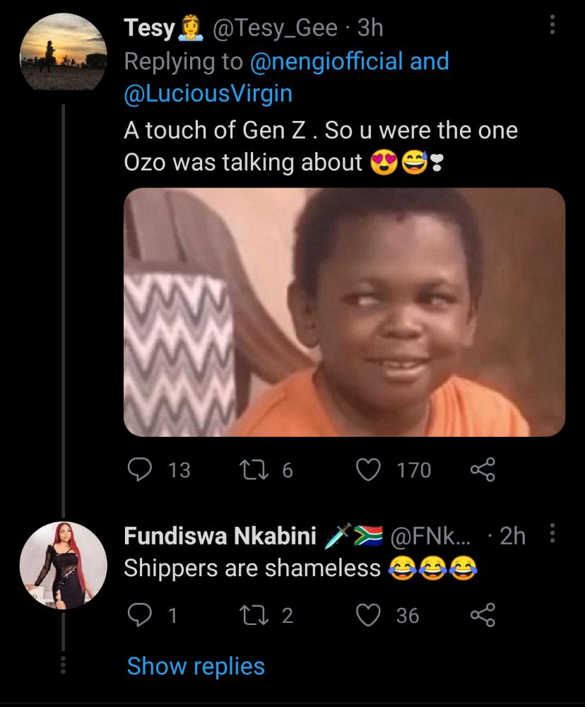 A few moments after he shared this picture, Nengi also shared a hot picture of herself on her Twitter page and attached the caption, “Gen Z posses be like…lol”.