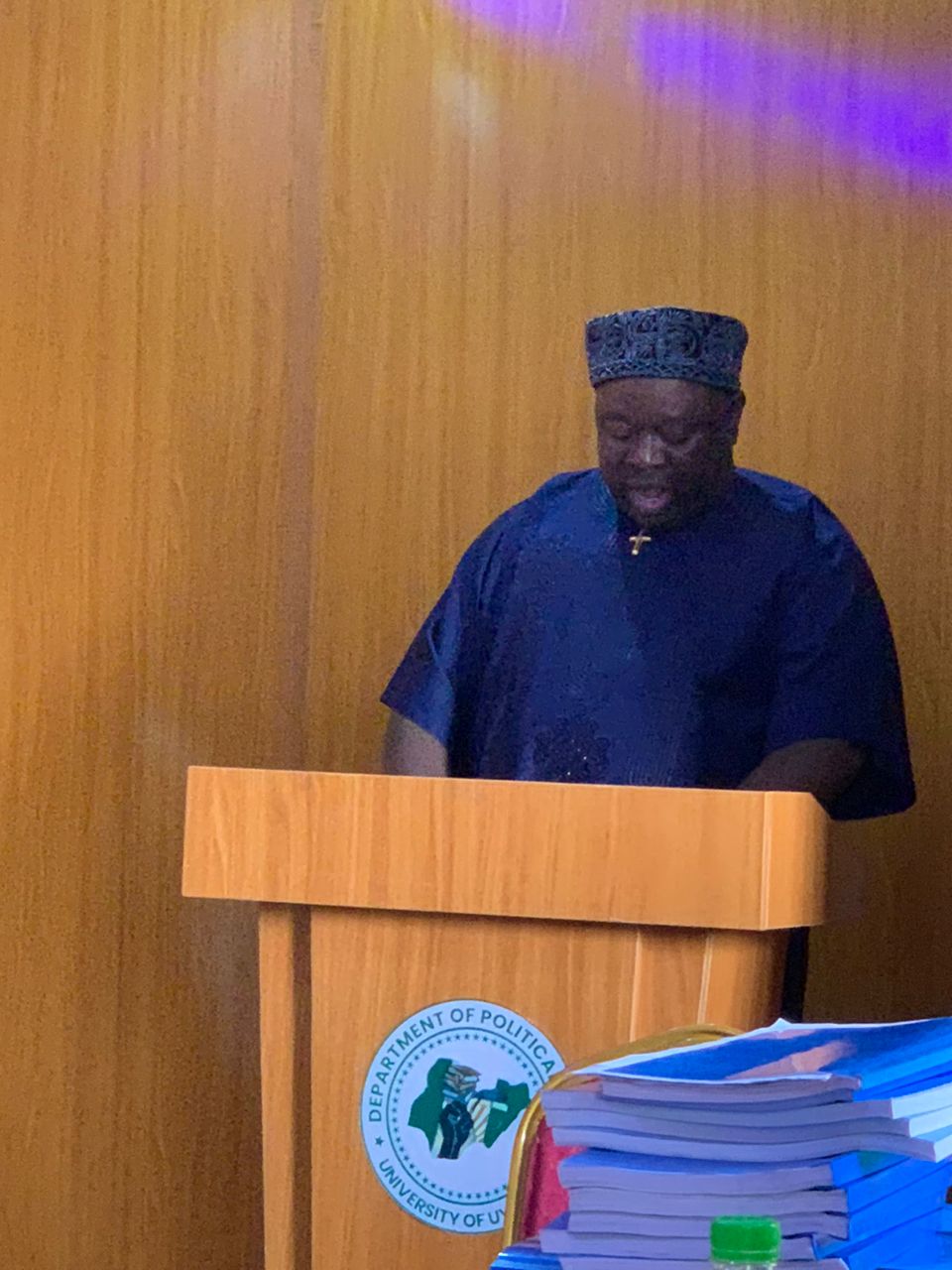 Making his final defence as part of requirement for the conferment of the M.Sc degree, Pastor Reuben appeared for the External Defence in Political Science at the University of Uyo with confidence despite being a governing council member.
